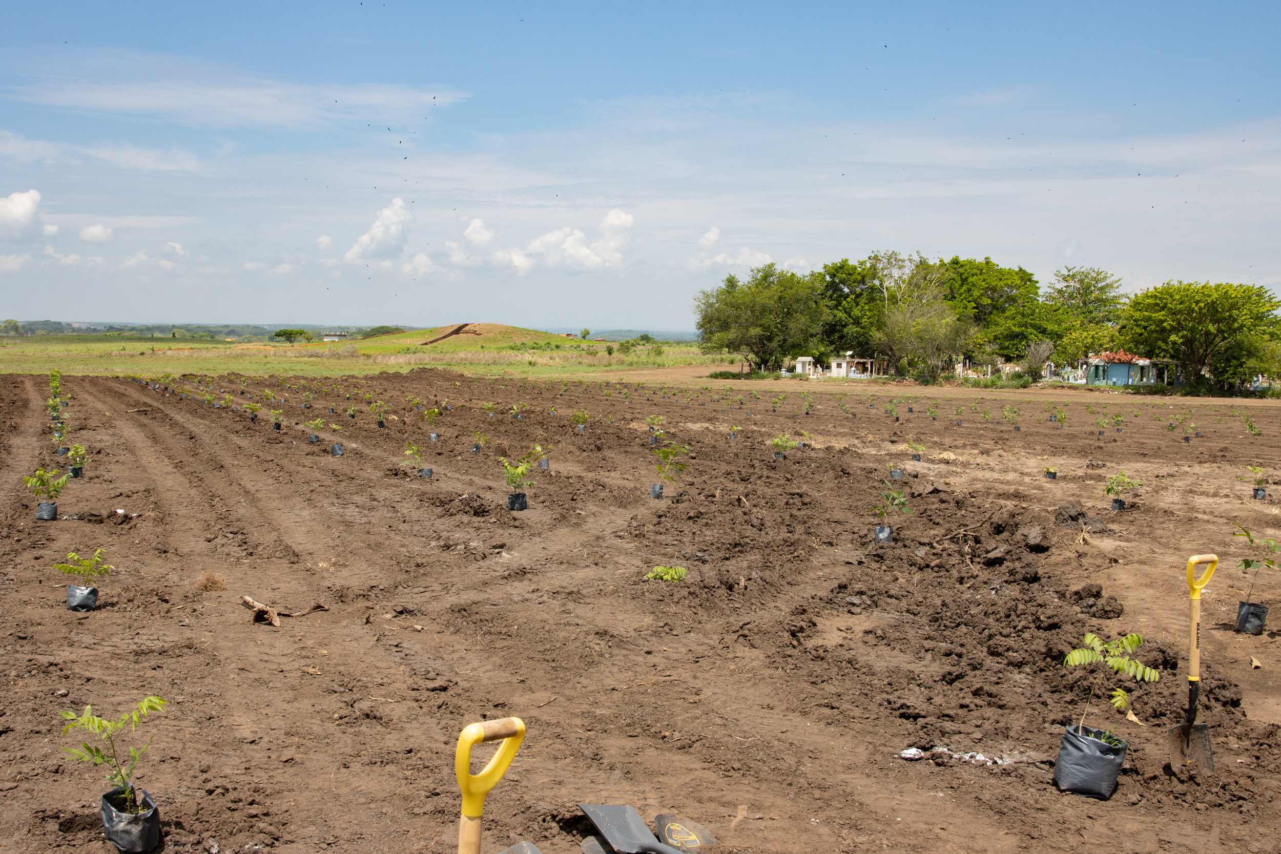 En el terreno donde se construye la cervecería, se han plantado 4 mil 500 árboles, con la participación de cada miembro de las comunidades vecinas: alumnos, maestros y toda la comunidad. Algunos de estos árboles ya alcanzan los 3 metros de altura.