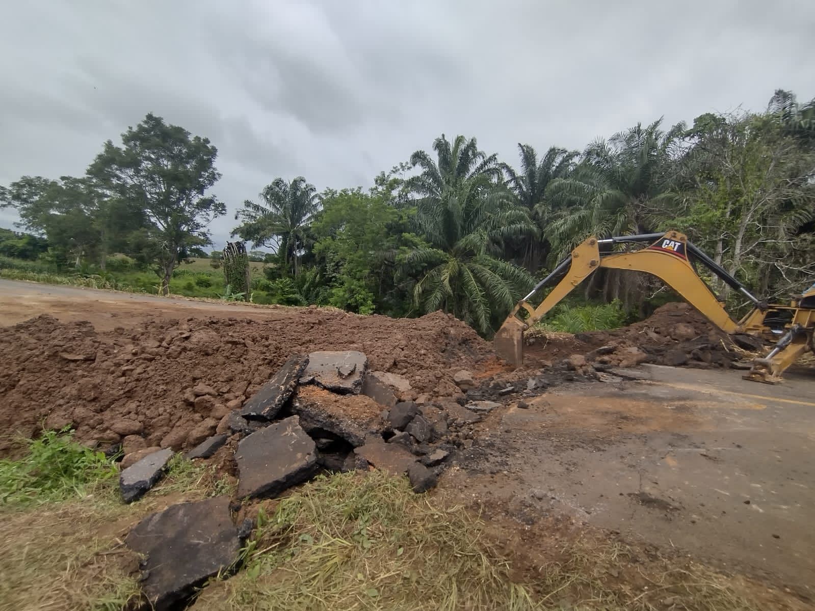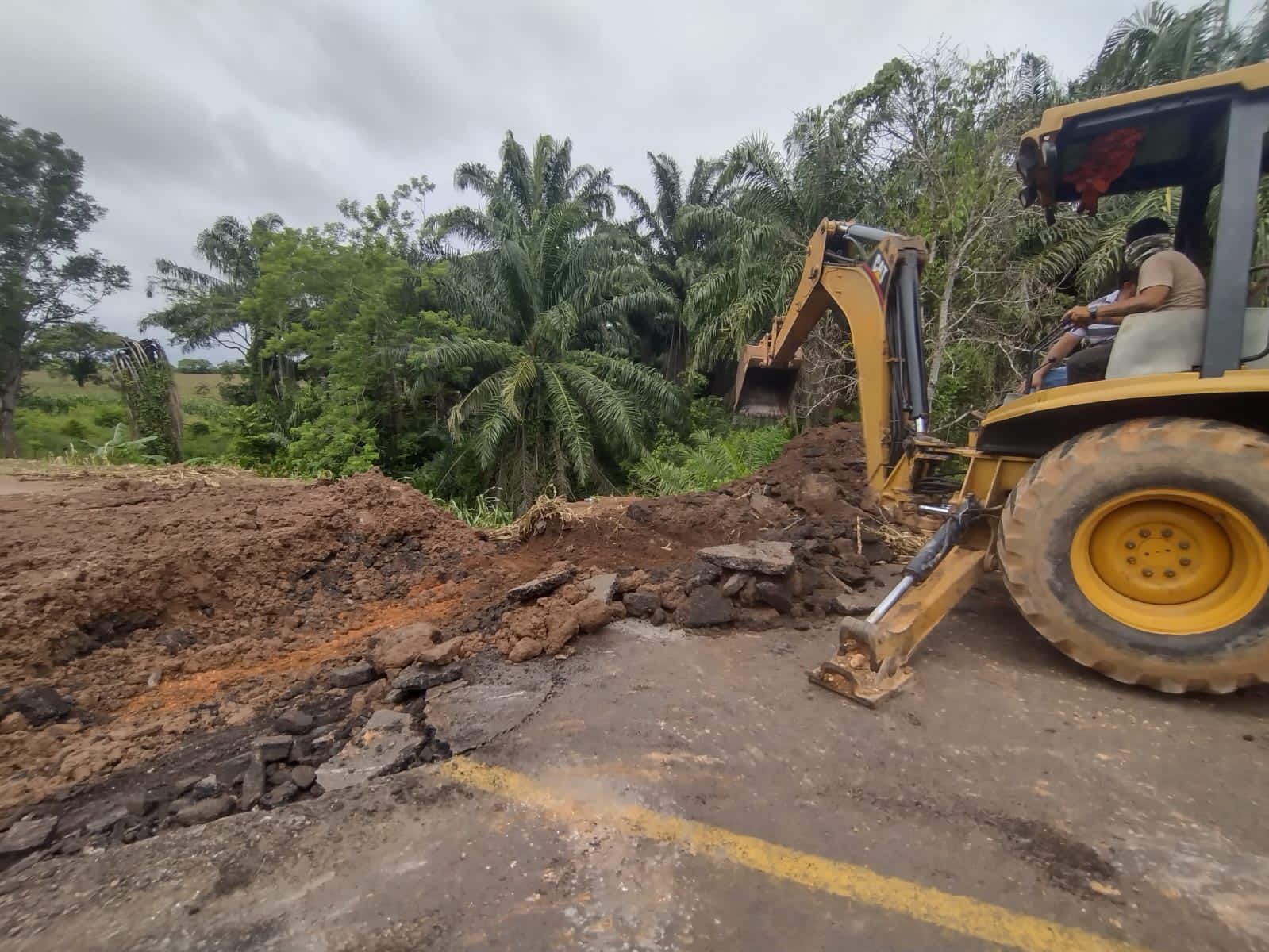 En este momento, una excavadora retira la alcantarilla colapsada en el kilómetro 213+500, y una vez que llegue el material, se realizarán las maniobras correspondientes. Dichos trabajos se estiman concluirlos en 48 horas.