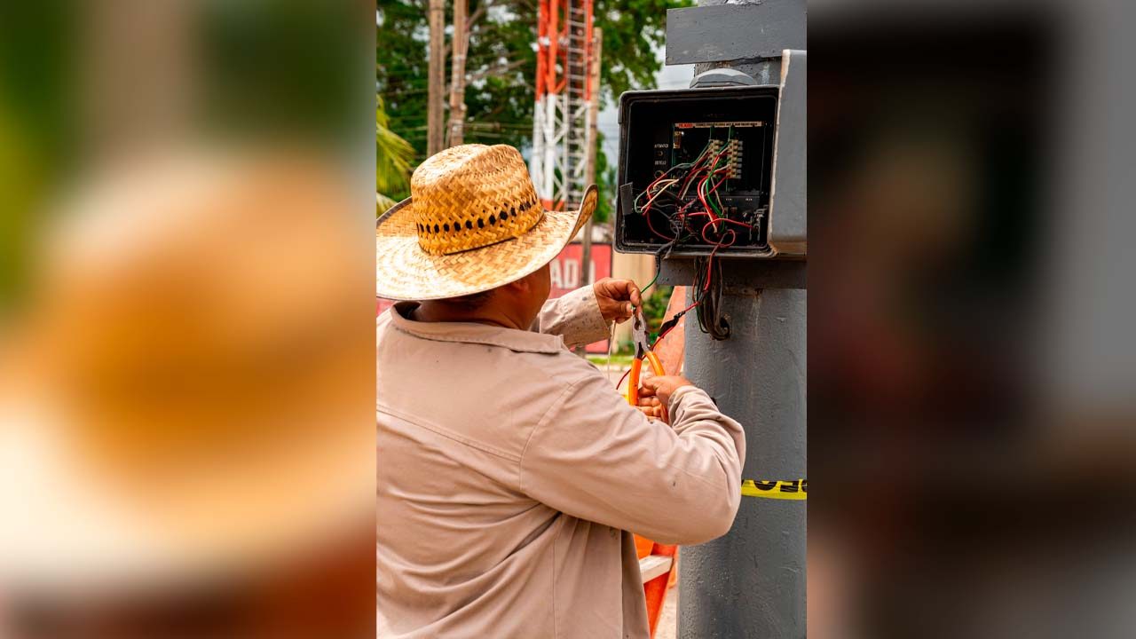 Refuerzan mantenimiento de semáforos en Minatitlán