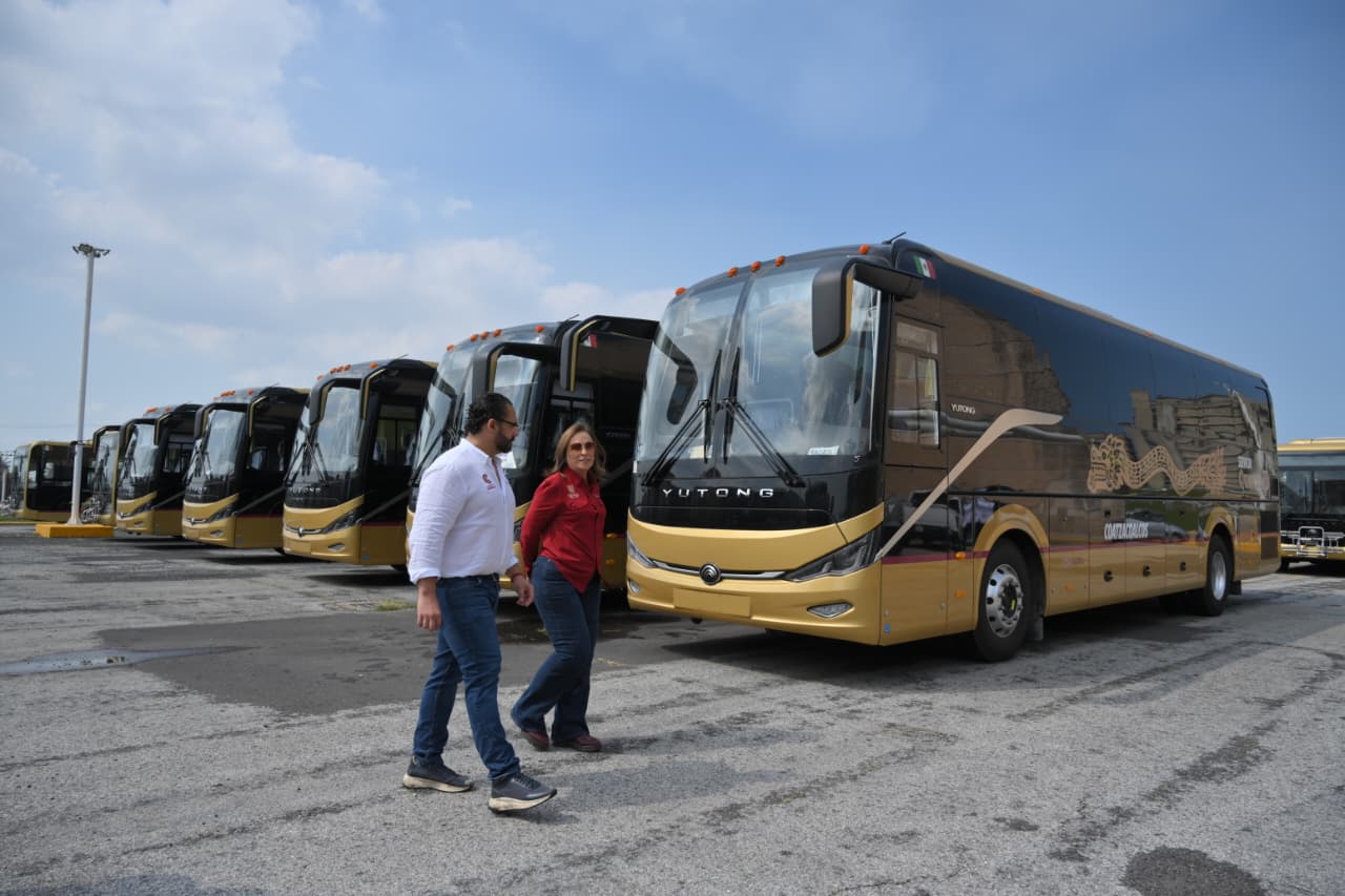 El punto central del recorrido tuvo lugar en el estacionamiento del Centro de Convenciones, donde la gobernadora y el alcalde supervisaron las 64 nuevas unidades de autobuses híbridos Quetzalli. Estas unidades, que ya se encuentran físicamente en la ciudad, representan el pilar de la modernización del transporte público en la región.