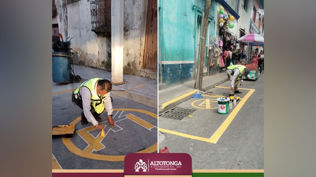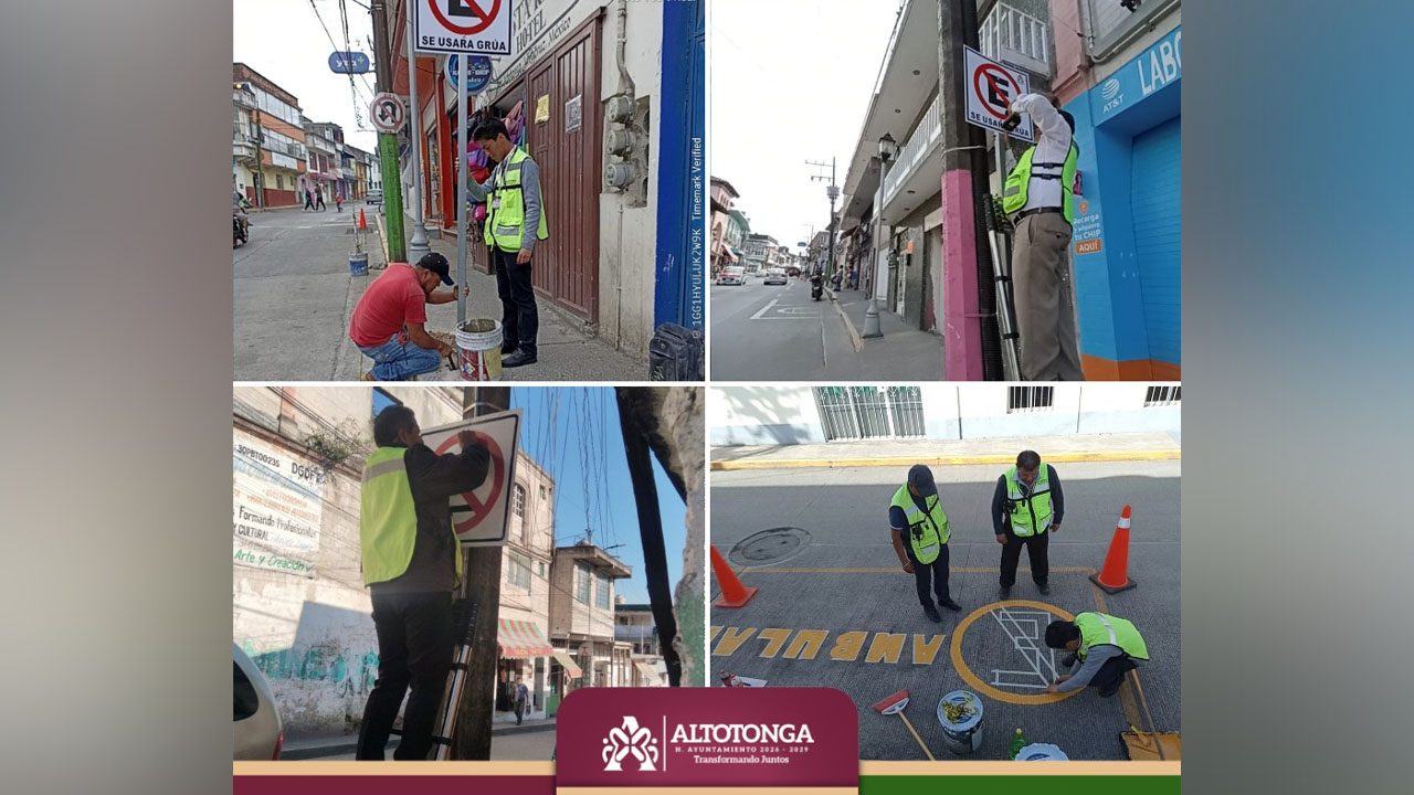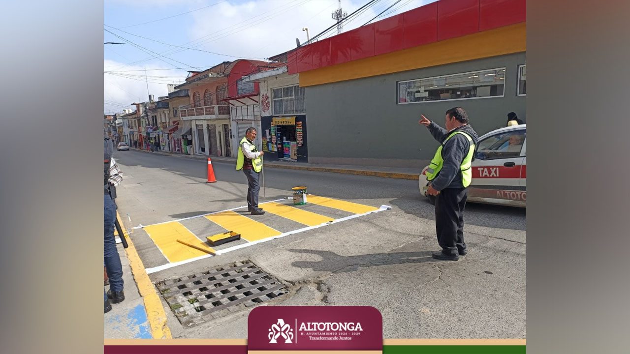 Altotonga, Ver.- El Ayuntamiento de Altotonga, a través de la Dirección de Vialidad, continúa realizando trabajos de renovación de señalética y cruces peatonales en distintos puntos de la cabecera municipal.