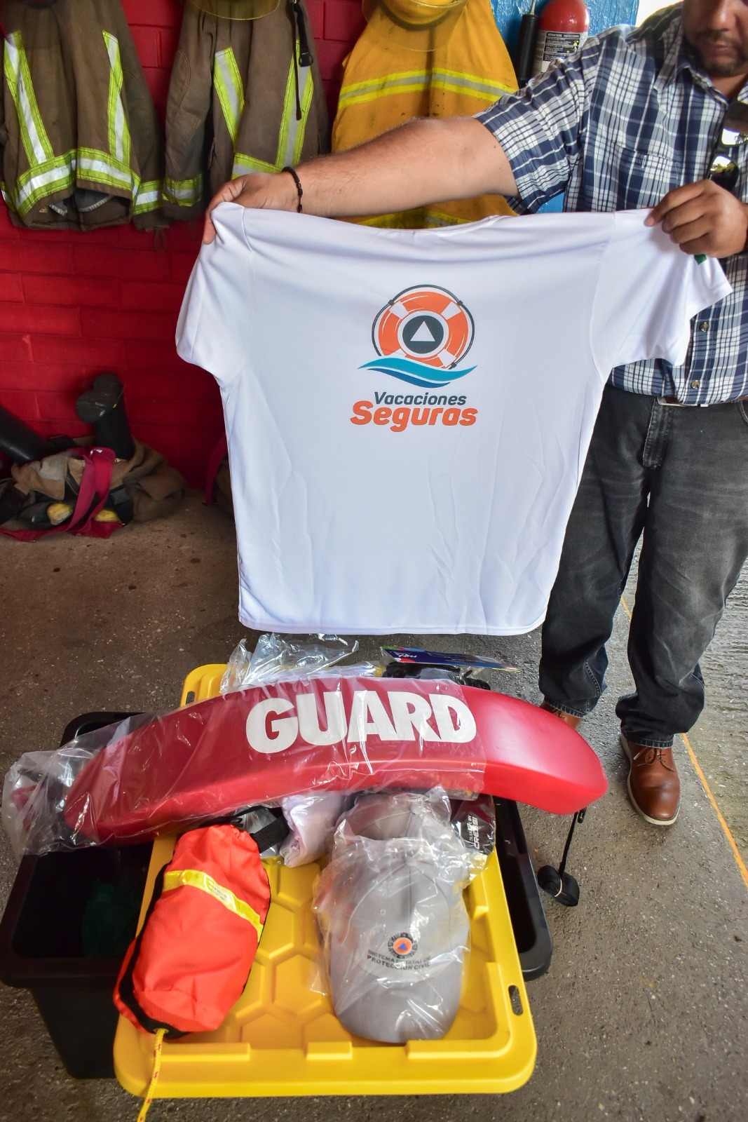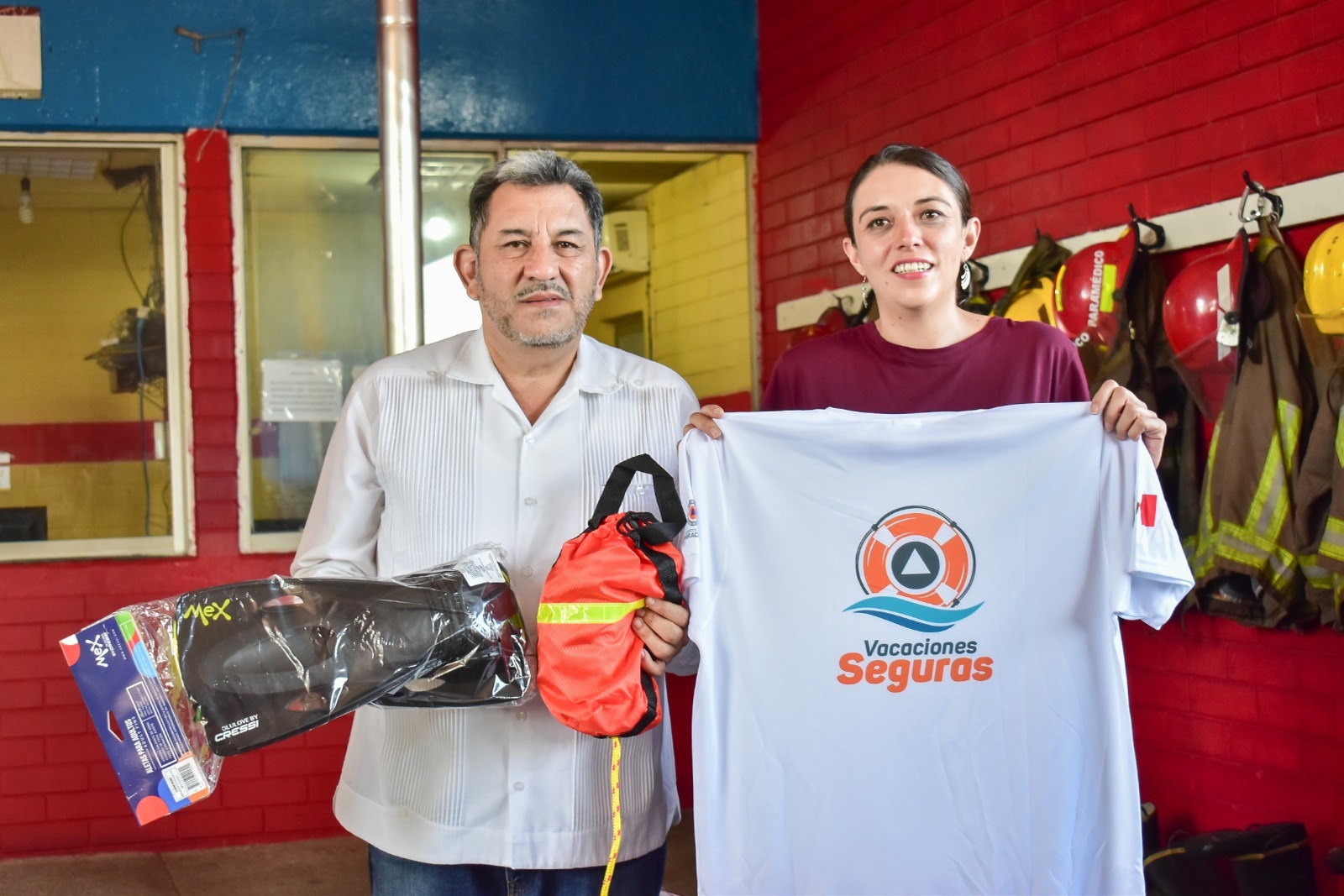 Osorno Maldonado, expuso que este día otorgaron: Seis playeras manga corta, cinco gorras color gris con logotipo y leyenda “Sistema Estatal de Protección Civil”, una aleta de socorrista, una bolsa de lanzamiento, y un tubo de rescate.
