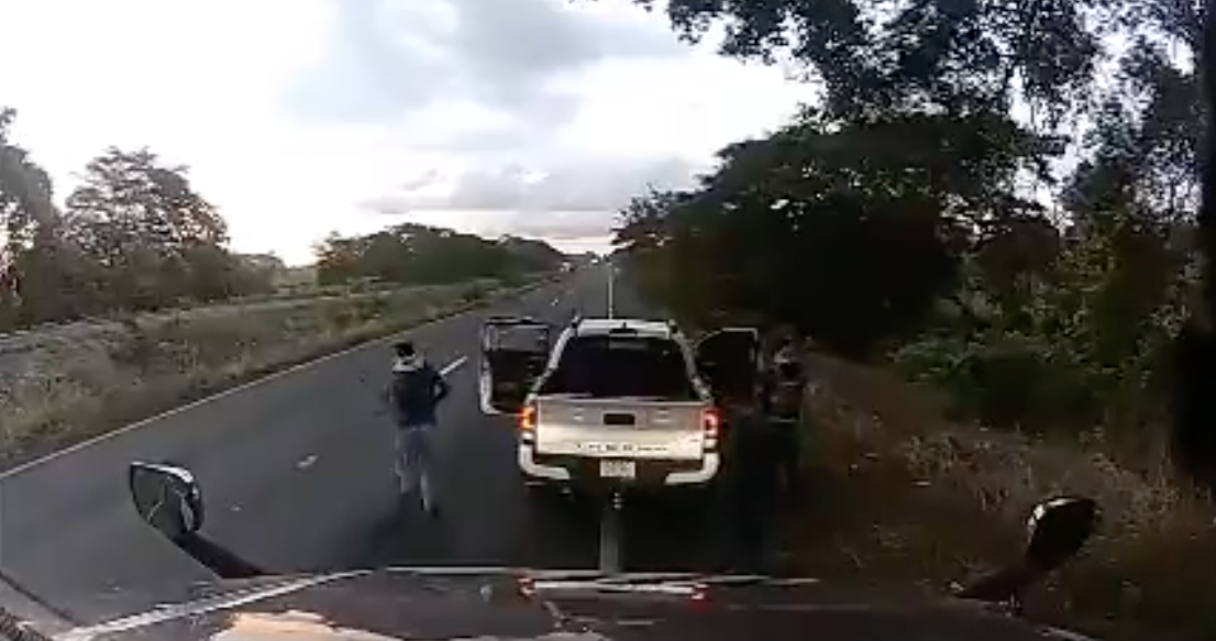 En el video que se muestra el operador se detienen para evitar chocar con la camioneta que le cierra el paso en la autopista 145-D.
