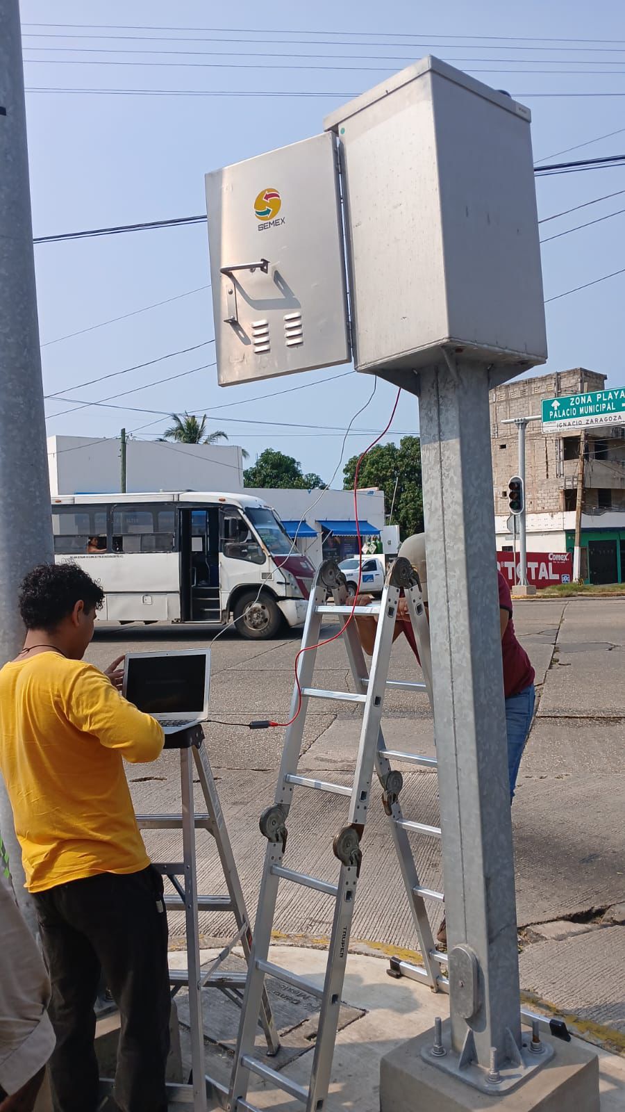 Los trabajos fueron realizados mediante una colaboración entre el personal de Alumbrado Público y la empresa especializada Semáforos de México (SEMEX), contemplando la reparación y, en su caso, la sustitución total de los dispositivos que presentaban fallas técnicas, entre ellos el ubicado sobre el malecón costero a la altura de la avenida Las Palmas.