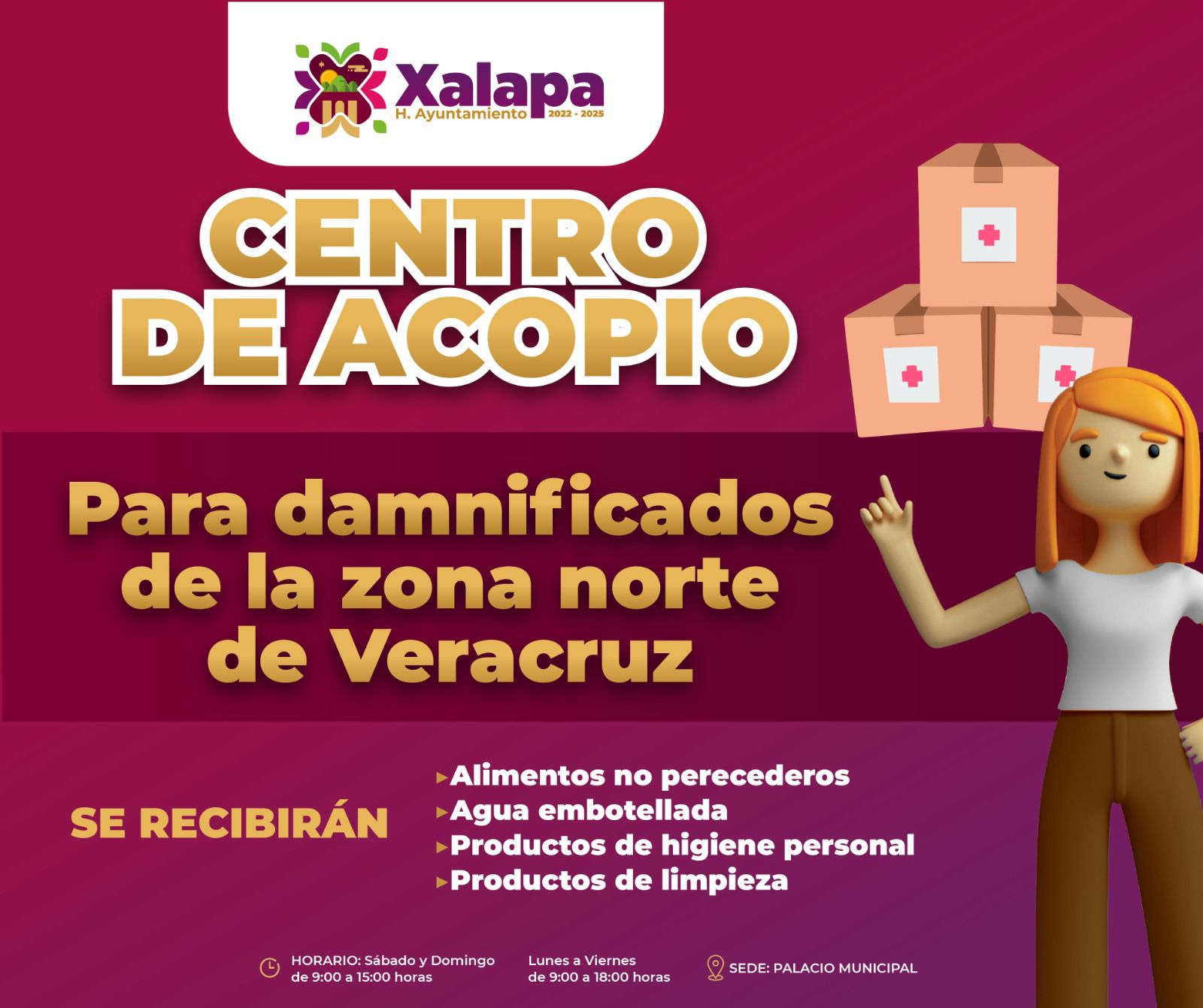 Xalapa, Ver.- El Ayuntamiento de Xalapa reitera la invitación a la ciudadanía, así como a los distintos sectores sociales y productivos de la capital, a continuar sumándose a la donación de víveres y artículos de primera necesidad en apoyo a las familias damnificadas por las recientes lluvias registradas en la zona norte de Veracruz.