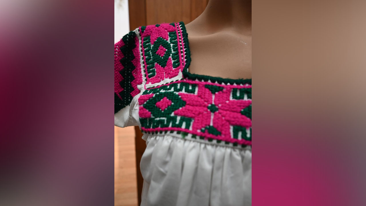 Las piezas son artesanías que preservan técnicas actualmente poco comunes, como el bordado en punto de cruz, de lomillo y el tejido en telar de cintura.
