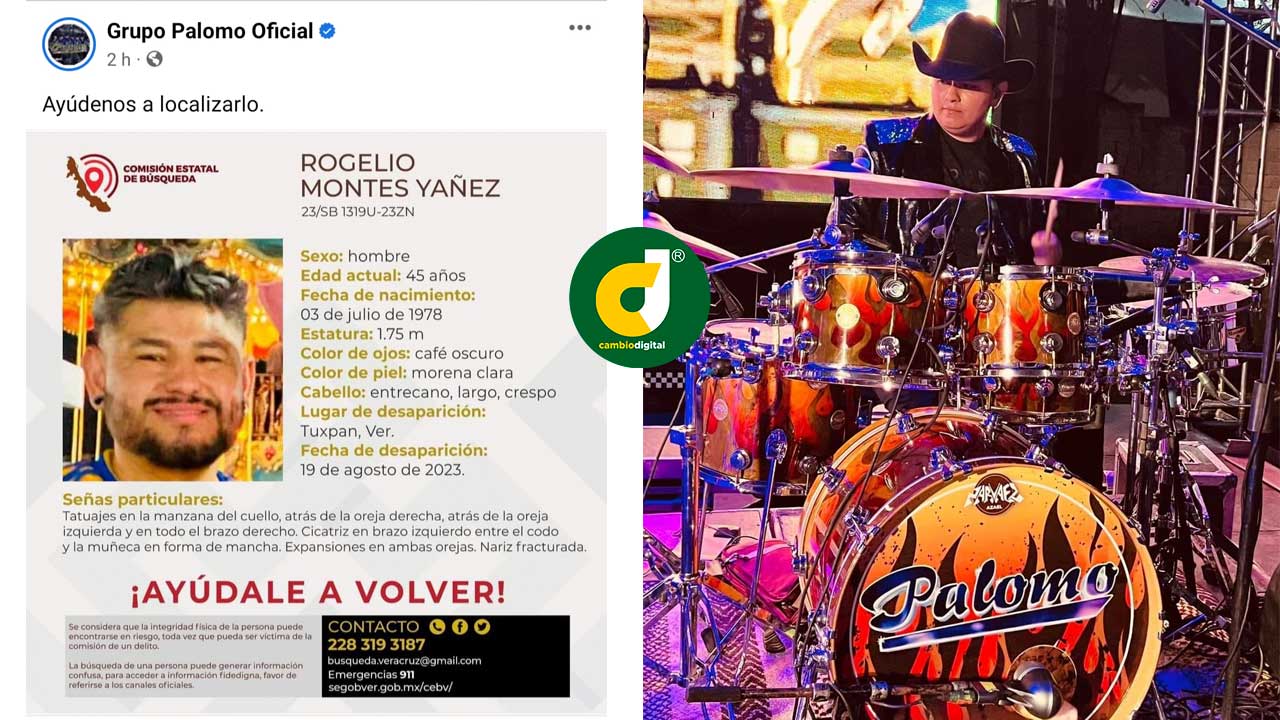 Tras confirmar la Comisión Estatal de Búsqueda de Veracruz, cuyo organismo gubernamental emitiera la ficha de localización de Rogelio Montes Yáñez, integrante del grupo musical “Palomo”.