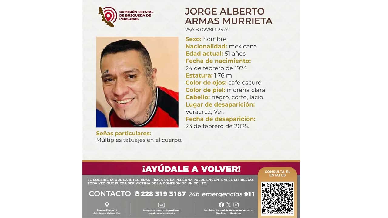 Veracruz, Ver.- La Comisión Estatal de Búsqueda reportó como desaparecido a conocido tatuador del puerto de Veracruz.