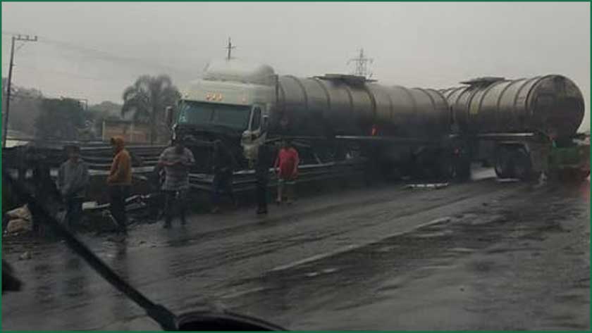 Veracruz, Ver.- La tarde de este sábado, un tráiler tipo pipa doble salchicha sufrió un accidente en la autopista Veracruz-Puebla, a la altura de Orizaba.