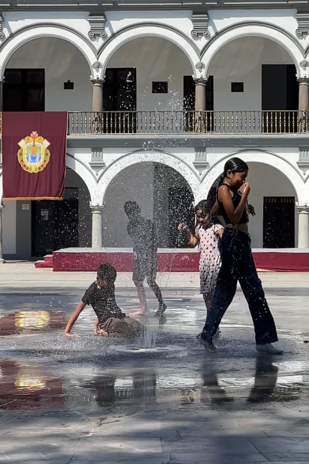 También se intervinieron puntos emblemáticos como la fuente del Zócalo, que llevaba meses fuera de servicio, así como las seis fuentes ubicadas en la Plaza de la República, en donde fue necesario sustituir bombas, rehabilitar mecanismos y eliminar acumulaciones de óxido y suciedad, garantizando un trabajo continuo y adecuado.