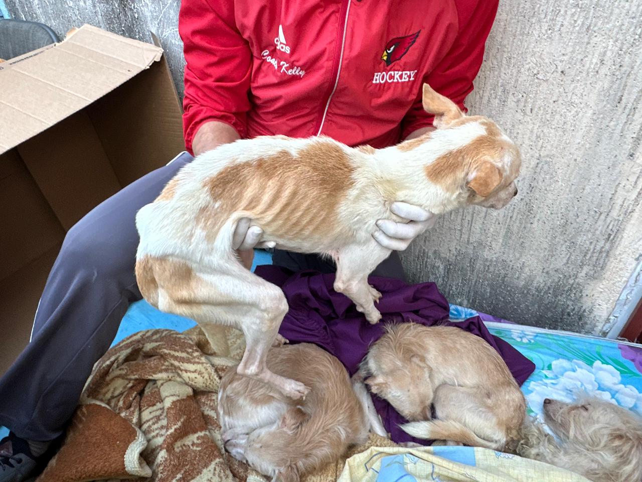Los caninos presentaban desnutrición, hipotermia e infestación de garrapatas, por lo que fueron trasladados para su valoración médica, además al no localizarse a persona alguna en el inmueble, se dejó citatorio al propietario, se abrió expediente y se inició el procedimiento administrativo correspondiente.
