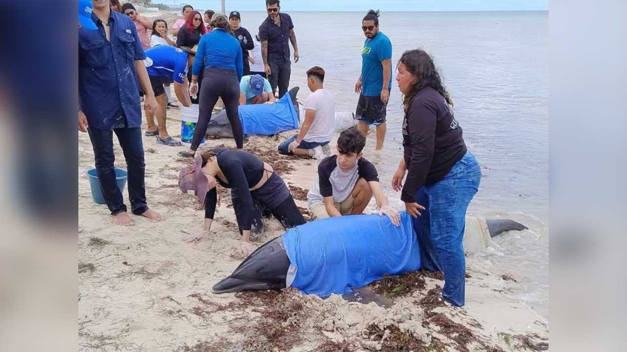 Rescatan a dos delfines varados en Telchac Puerto, Yucatán