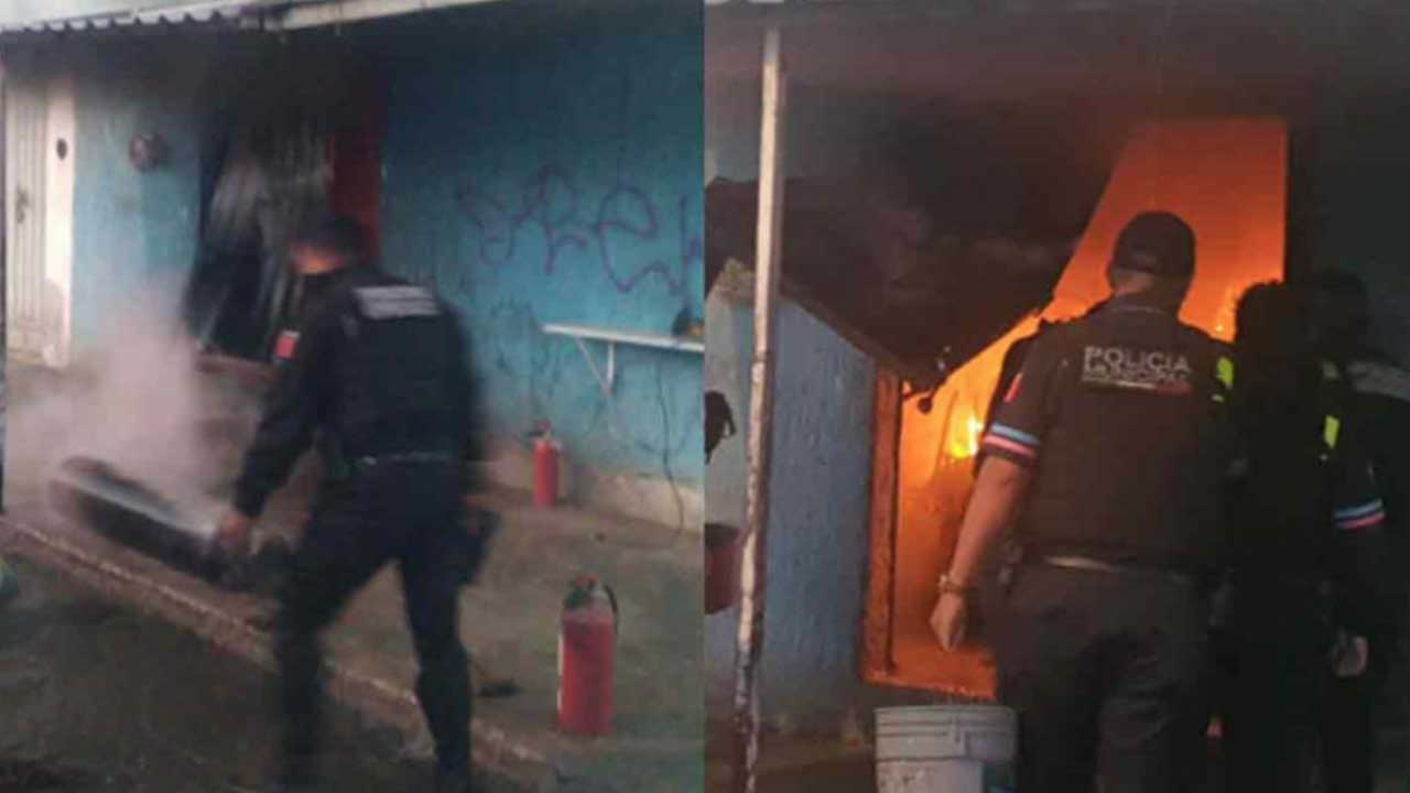En una parte del video se puede observar a policías y vecinos sobre la azotea del establecimiento, desde ahí comenzaron a rescatar a los tres niños y posteriormente a la madre que buscaba proteger a sus hijos del fuego.
