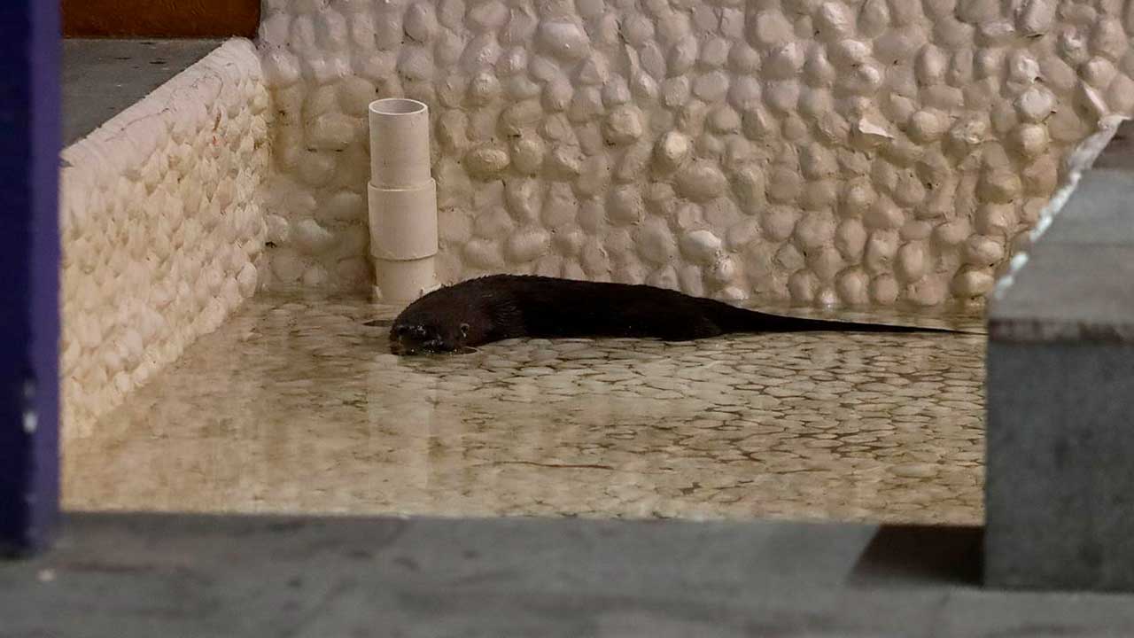 En su intento por capturarla y meterla en una jaula transportadora un trabajador de limpieza de la plaza fue mordido por la nutria.