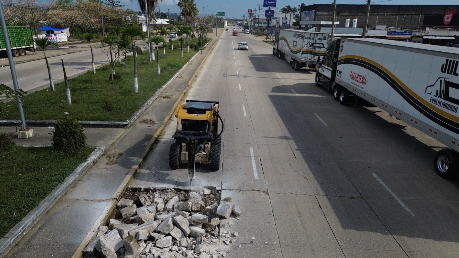 Coatzacoalcos, Ver.- Consolidando una estrategia integral de mejora urbana, el Gobierno de Coatzacoalcos, encabezado por el alcalde Pedro Miguel Rosaldo García, inició los trabajos de rehabilitación de la carretera Transístmica, en el tramo que comprende del puente Calzadas al puente Joroba.