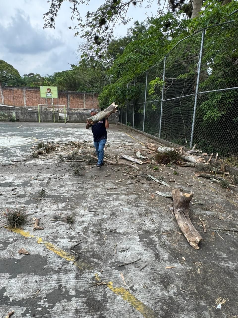 Entre los reportes atendidos se encuentra la cancha deportiva de la colonia Dante Delgado, donde un fragmento de árbol cayó dentro de la instalación mientras se encontraba vacía. A solicitud de los vecinos, el material fue retirado de inmediato por el personal del Comude para evitar riesgos, confirmando que no hubo personas lesionadas.