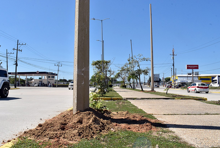 Restauran luminarias de principales avenidas de Coatzacoalcos