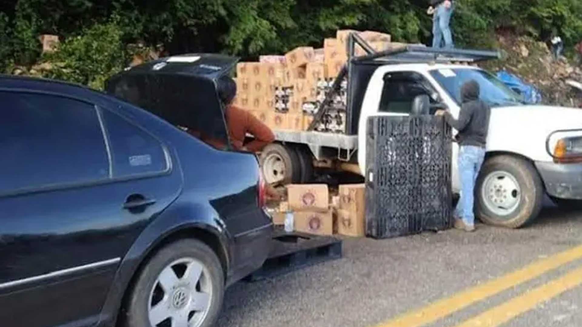Habitantes de la región, en su mayoría indígenas, empezaron a llegar con sus vehículos para empezar la rapiña. A cargar con todo lo que pudieran. ¡Chelas gratis!