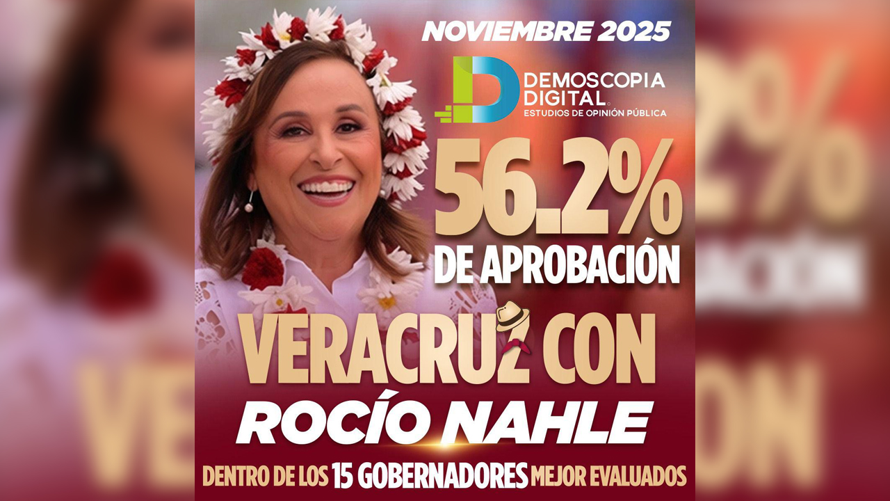 Xalapa, Ver.- La encuestadora Demoscopia Digital ubicó a la gobernadora de Veracruz, Rocío Nahle García, dentro del grupo de los 15 mandatarios estatales mejor evaluados del país, al registrar una aprobación del 56.2 por ciento.