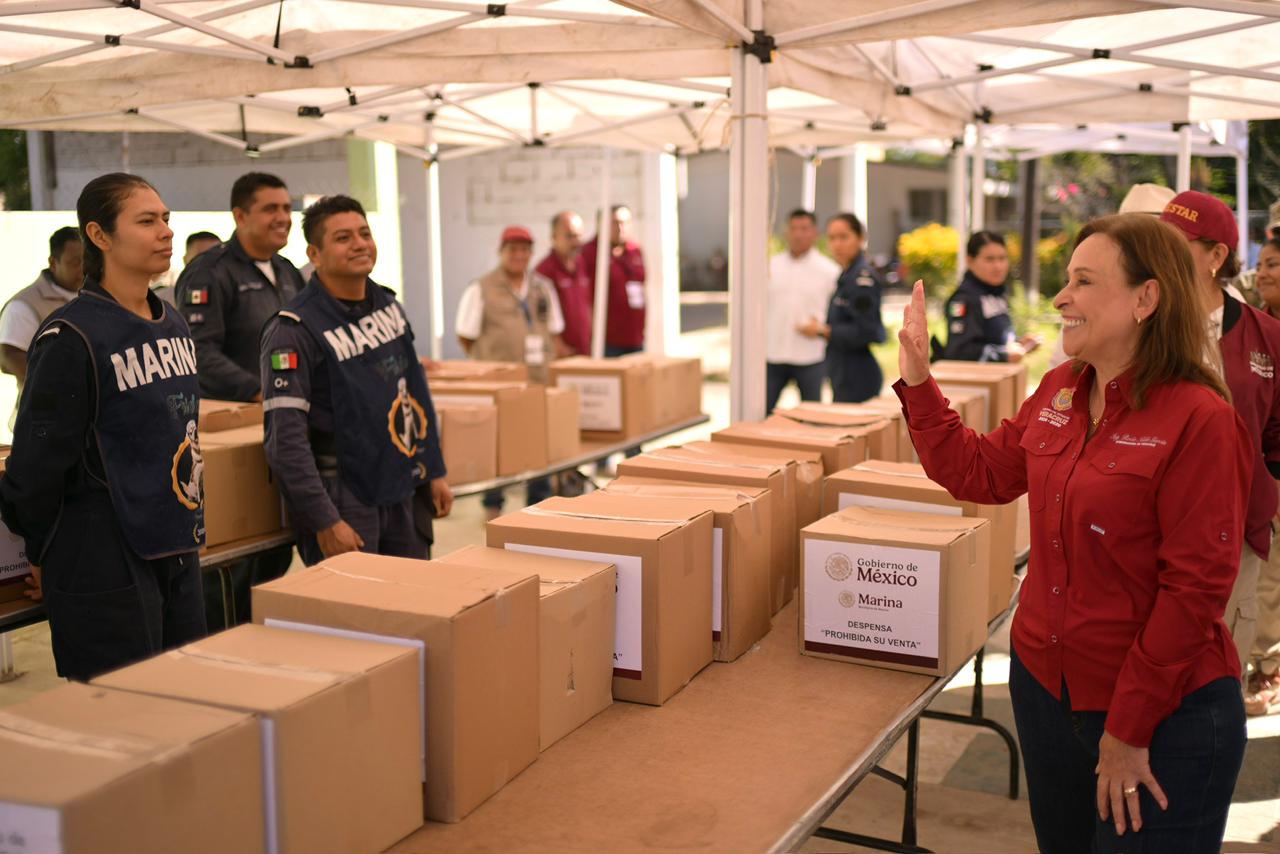 Agradeció además el respaldo de la Secretaría de Marina, que colabora en la entrega de paquetes alimentarios con productos de primera necesidad como frijol, arroz, atún, sardina, aceite, pasta y azúcar, entre otros insumos.