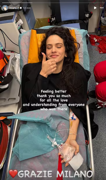 Rosalía suspende su concierto en Milán por una intoxicación: "Estoy vomitando ahí atrás"