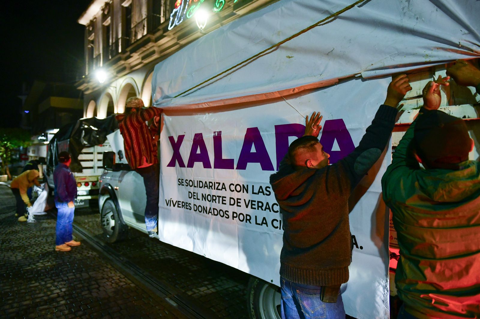 Xalapa, Ver.- Esta mañana partieron de Xalapa camionetas cargadas con víveres y artículos de primera necesidad destinados a las familias de la zona norte del estado afectadas por las recientes lluvias.
