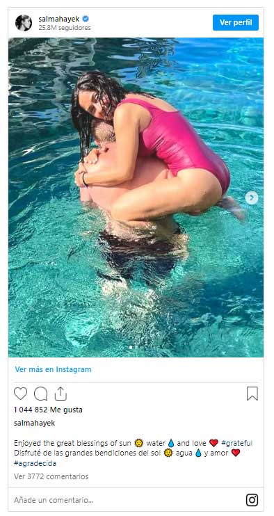 “Disfrutando de las grandes bendiciones del sol, agua y amor, agradecida”, escribió la actriz de “Frida”.