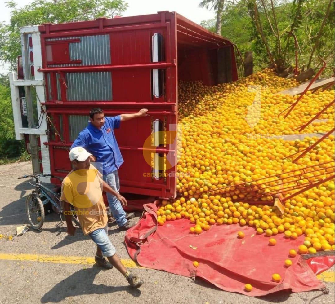 Camión vuelca y destroza 5 autos en carretera de Tabasco