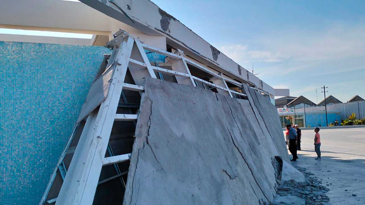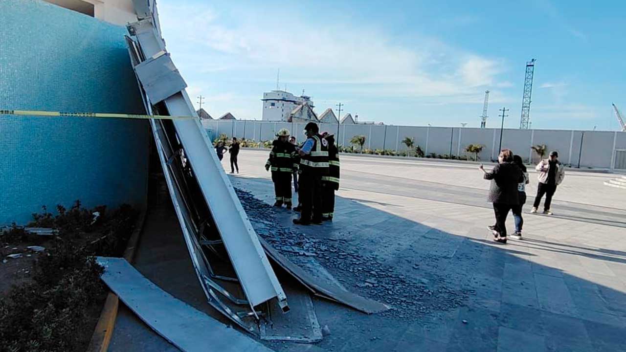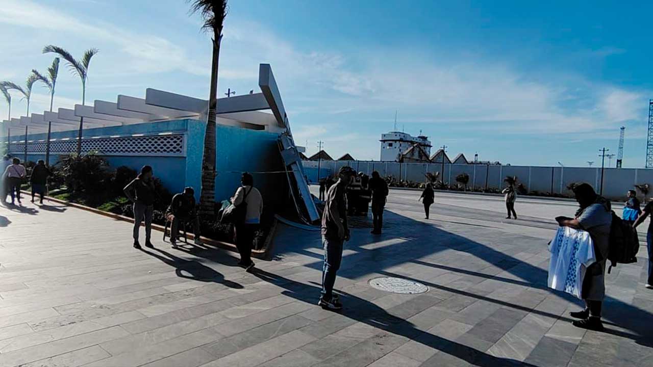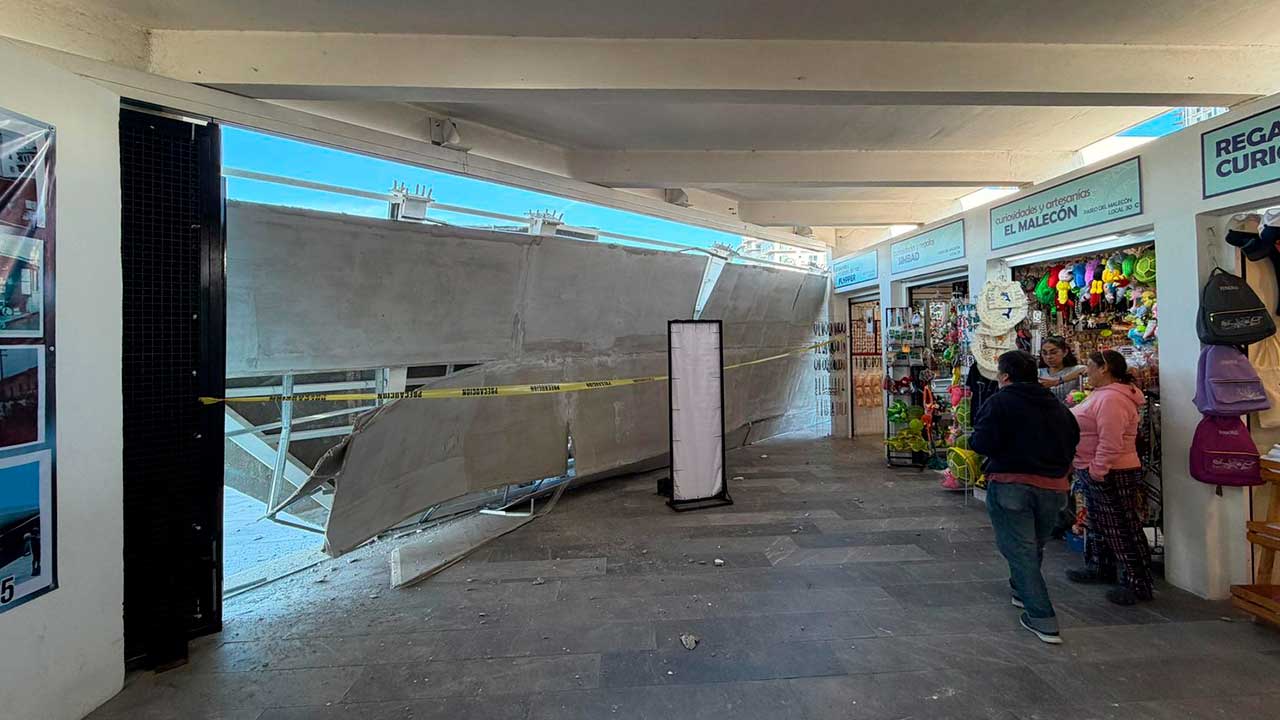 La Dirección Municipal de Protección Civil de Veracruz informó que señalizó y acordonó la zona en donde “se registró el derrumbe parcial del techo de los locales de artesanías ubicados en la Plaza del Heroísmo Veracruz”.