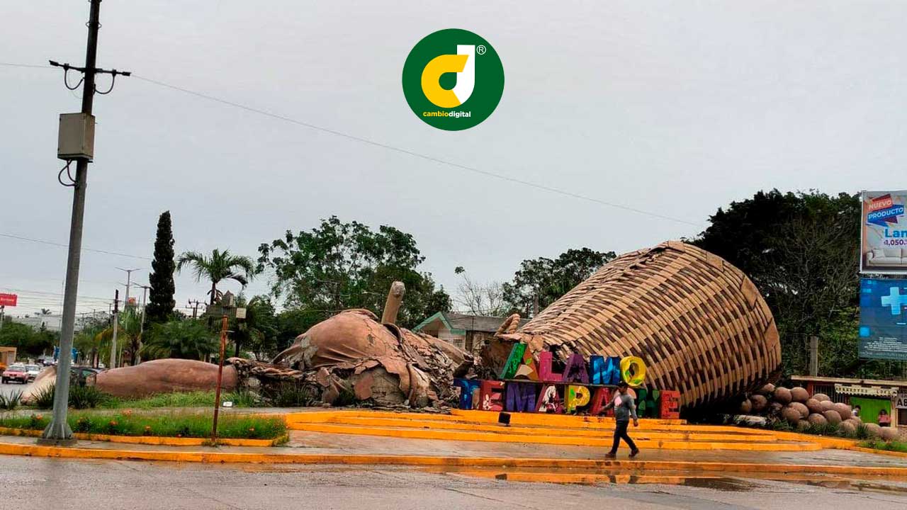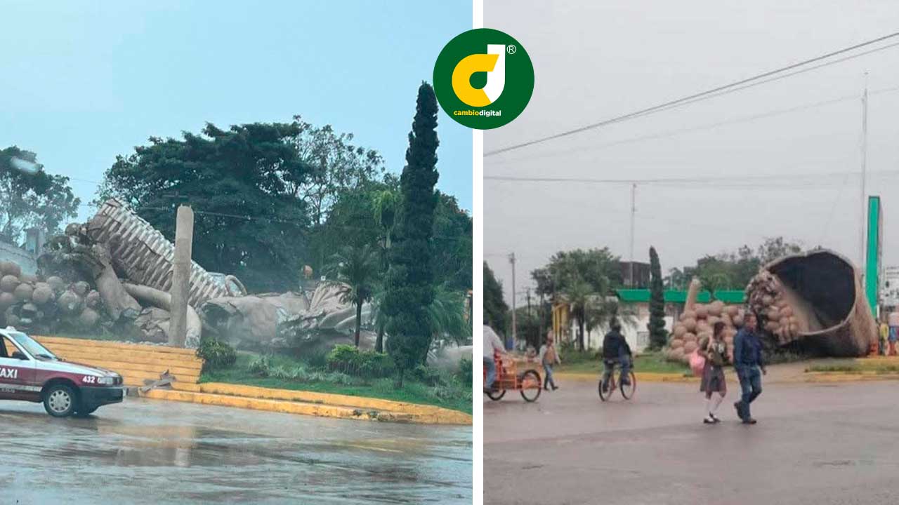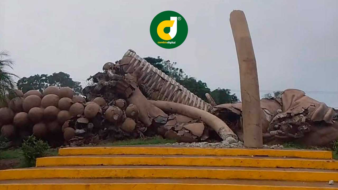 Álamo, Ver.- La emblemática escultura y monumento a "El Colotero" en Álamo Temapache se desplomó esta mañana en el municipio del norte de Veracruz.