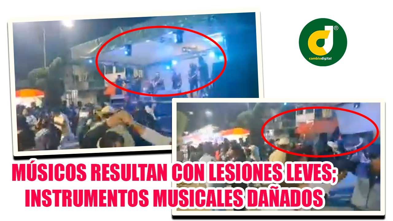 El baile organizado por la agencia municipal terminó antes de tiempo, luego de que los músicos resultaron con golpes y lesiones menores, al caer con todo y el escenario.