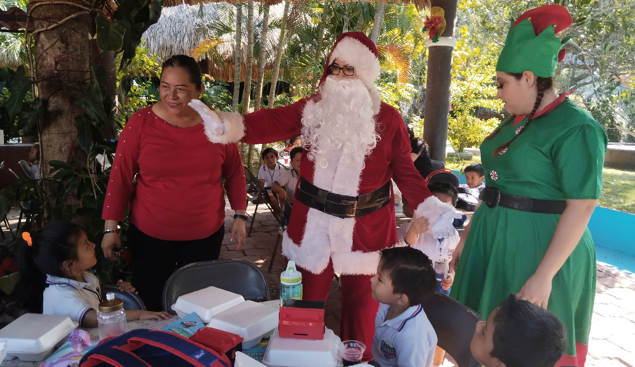 Al finalizar el desayuno, tuvieron la sorpresa de recibir a Santa Claus, se tomaron fotografías del recuerdo, rompieron la piñata llena de dulces y participaron en rifas de regalos especiales.
