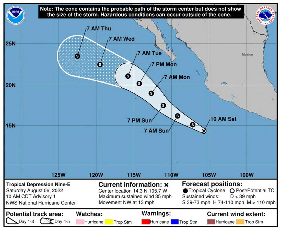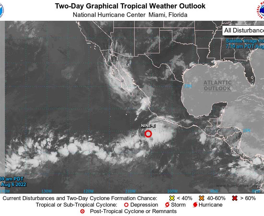 A las 10:00 horas, tiempo del centro de México, se formó la Depresión Tropical Nueve-E en el Océano Pacífico, que se prevé siga ganando fuerza para convertirse en la Tormenta Tropical Howard.