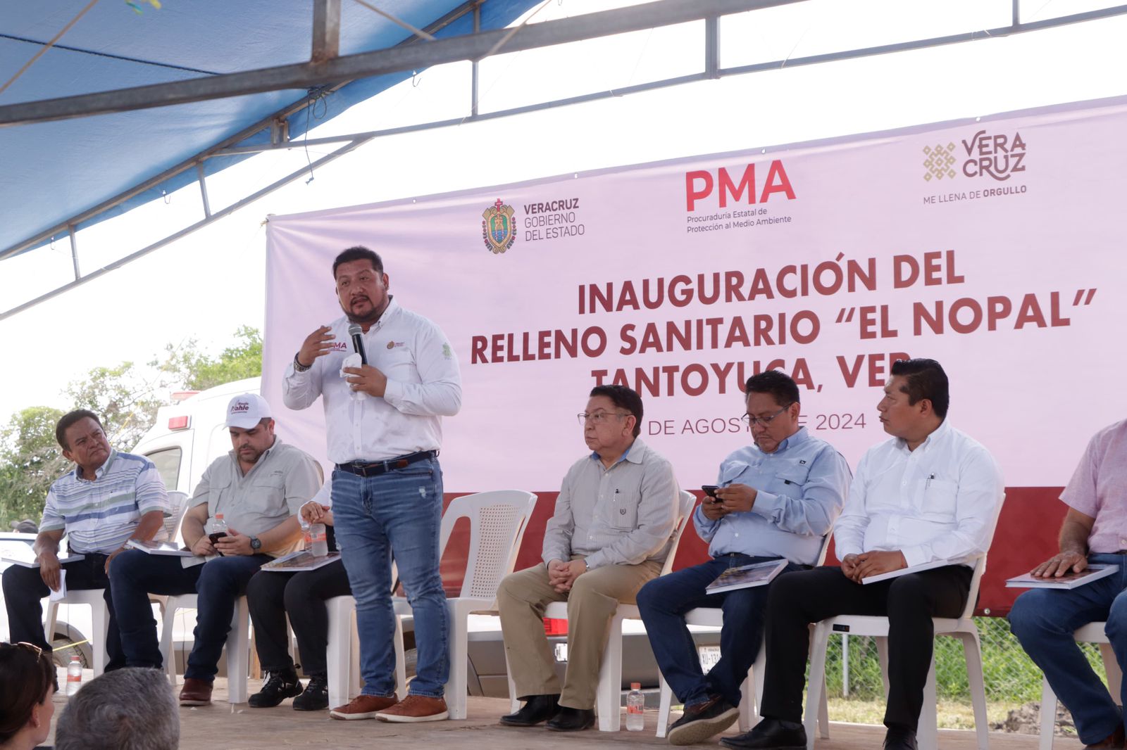 Tantoyuca, Ver.- Para fortalecer la política pública ambiental impulsada por el gobernador Cuitláhuac García Jiménez, la Procuraduría Estatal de Protección al Medio Ambiente (PMA) realizó este martes la inauguración del relleno sanitario regional “El Nopal” en el municipio de Tantoyuca.