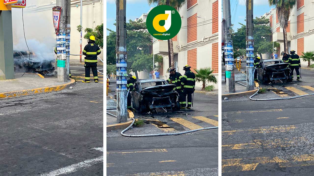 El siniestro ocurrió presuntamente por un posible cortocircuito, según el conductor de la unidad que quedó estacionada en la calle Puesta de Sol y avenida Rafael Orta del fraccionamiento Vista Mar.