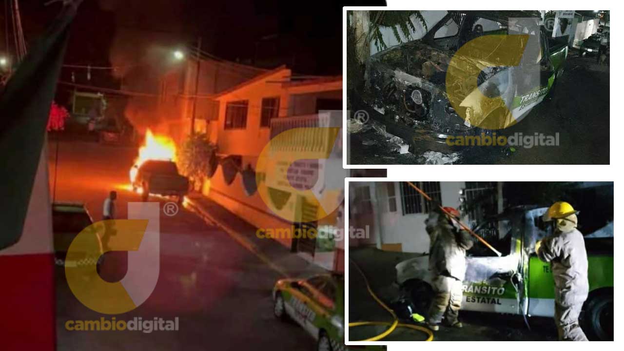 Se incendia una patrulla de Tránsito en Tihuatlán