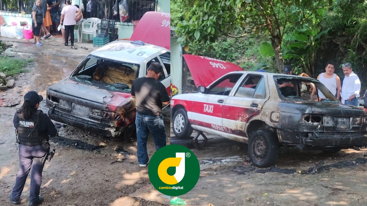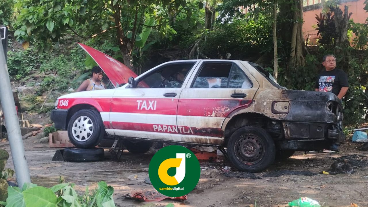 Papantla, Ver.-Una unidad de alquiler fue consumida por el fuego en su parte posterior cuando se encontraba dentro de un taller mecánico, en un terreno cercano a una escuela primaria en esta cabecera municipal.