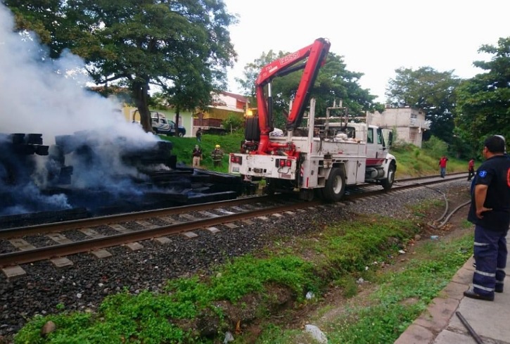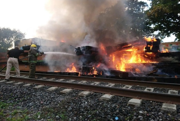 Los bomberos ya están sofocando y controlando el incendio ocurrido a los durmientes localizados a la altura en la Antigua Estación del Ferrocarril, informó el ayuntamiento en sus redes sociales.