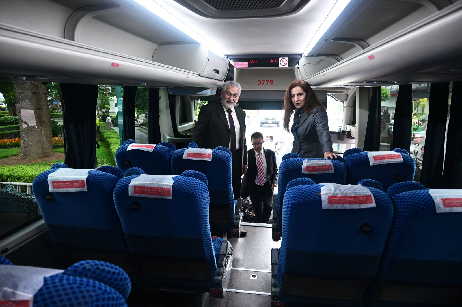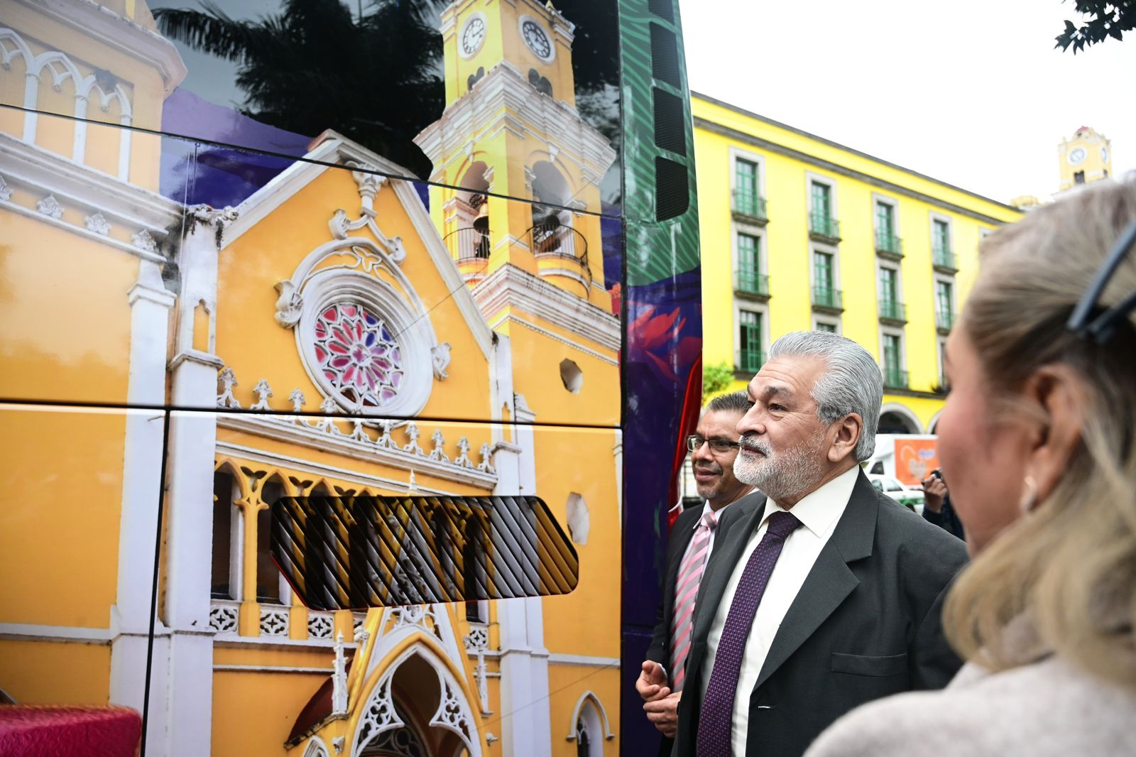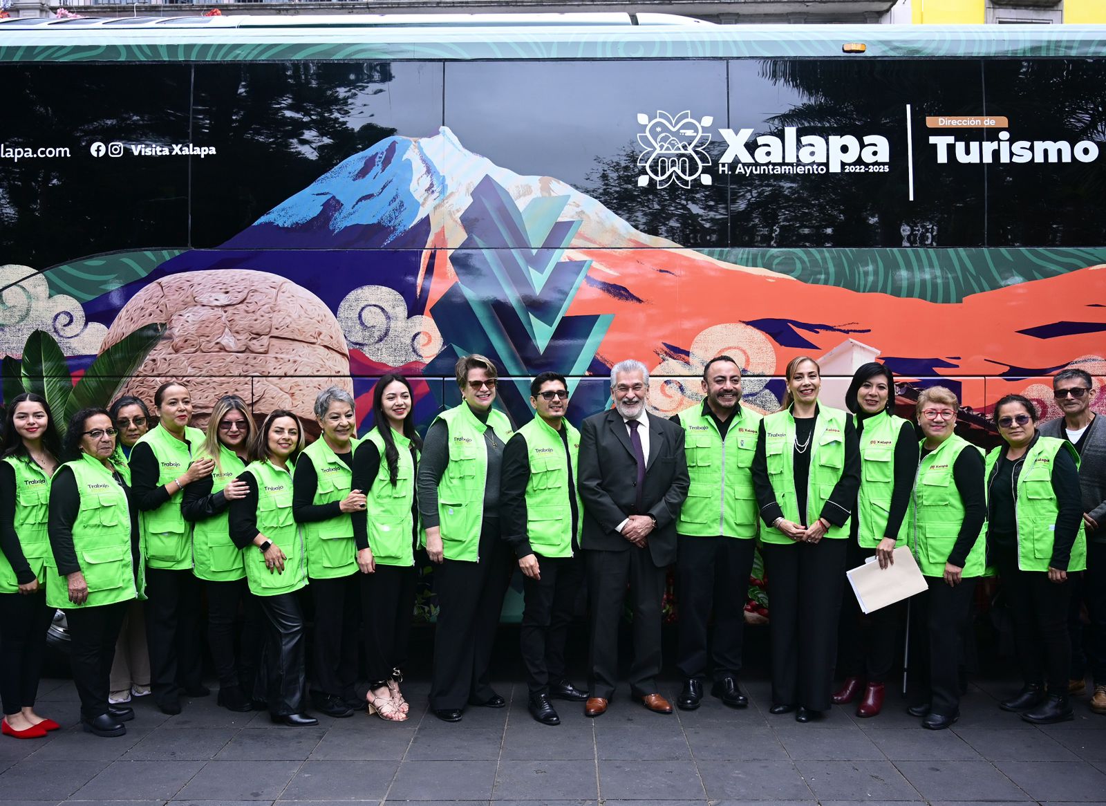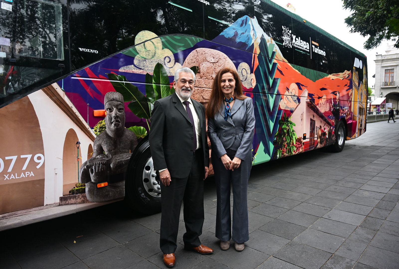 El Edil expuso que este autobús, que tiene un diseño exterior que recrea los principales atractivos de la ciudad, como el Barrio de Xallitic, la Orquesta Sinfónica de Xalapa (OSX) y el Museo de Antropología (MAX), será fundamental para que más personas conozcan la ciudad, se interesen por Xalapa y lleguen más visitantes.