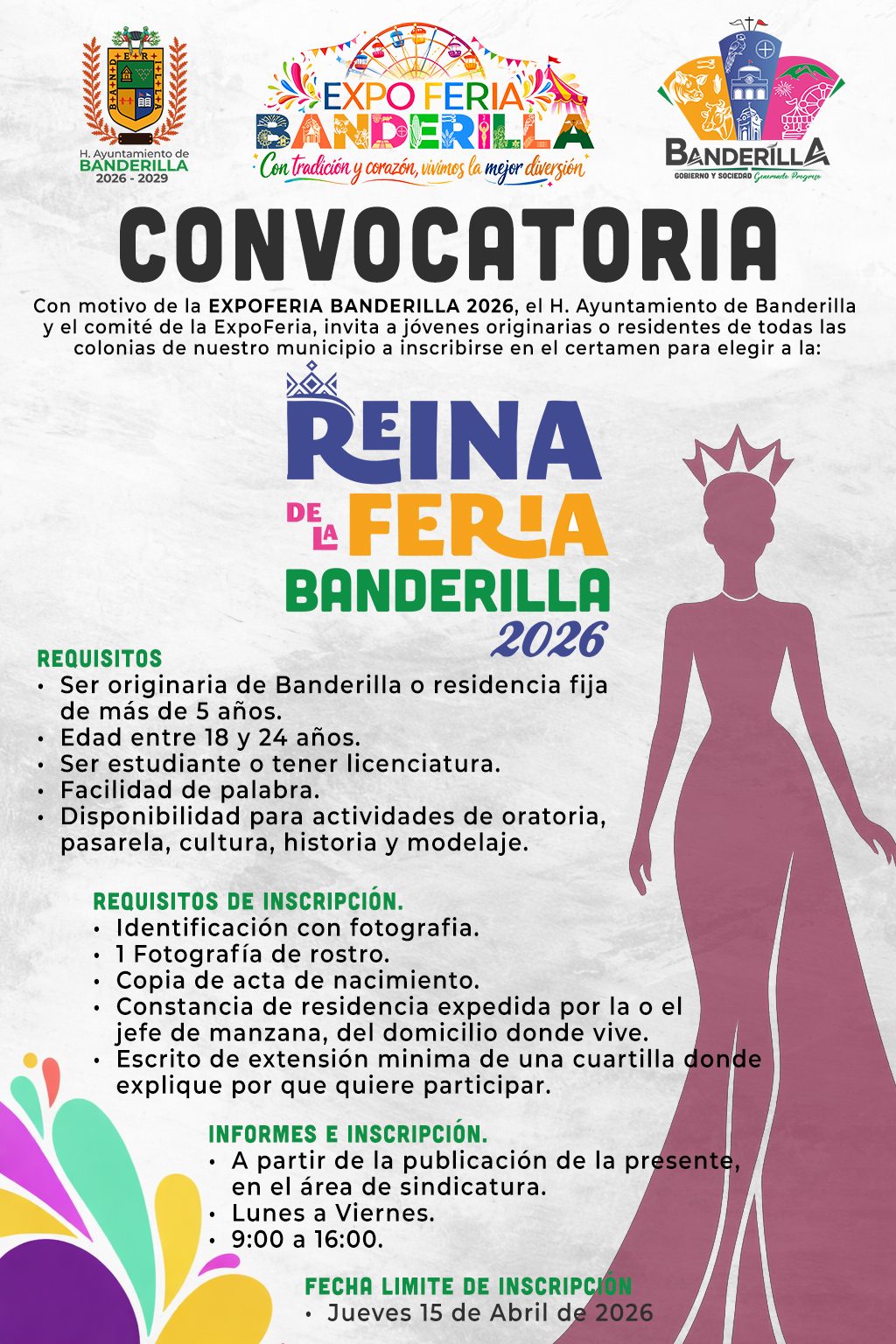 La invitación está dirigida a jóvenes de entre 18 y 24 años que sean originarios de Banderilla o cuenten con residencia en la localidad, quienes podrán formar parte de esta experiencia que busca promover la cultura, identidad y participación juvenil.