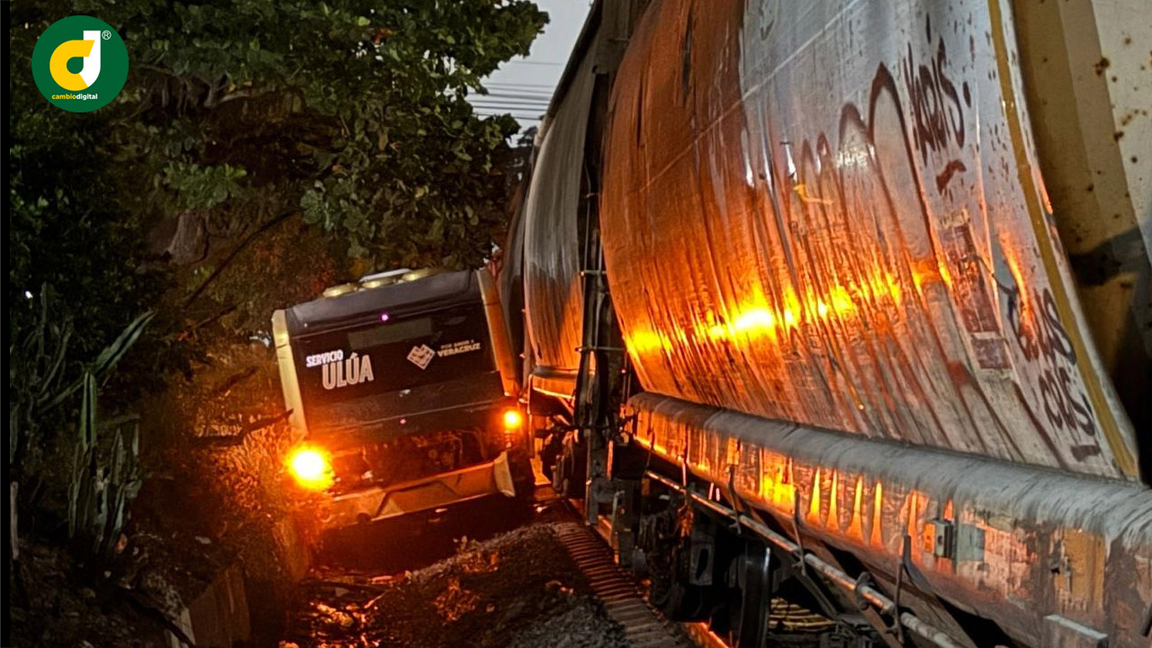 La unidad recién puesta en servicio quedó totalmente dañada y el acceso al fraccionamiento Palma Real y a Tejeria cerrado, pues el tren está detenido.