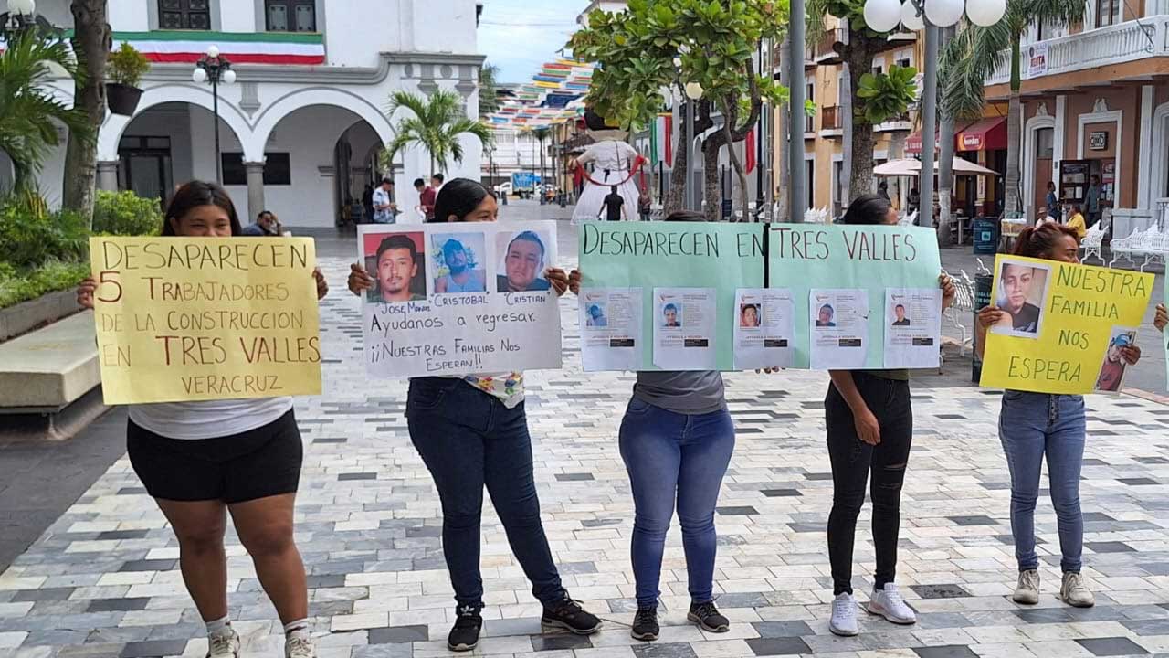 Se manifiestan en el zócalo de Veracruz familiares de 8 albañiles desaparecidos en Tres Valles