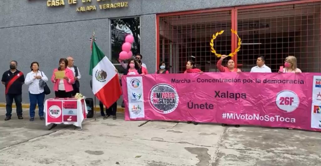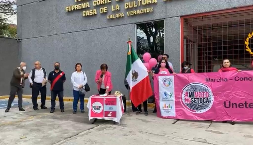 Xalapa, Ver.- Habitantes de diversas organizaciones civiles en Xalapa se manifestaron en respaldo a la Suprema Corte de Justicia para resolver las controversias interpuestas contra el Plan B que atenta contra el Instituto Nacional Electoral y la democracia en nuestro país.