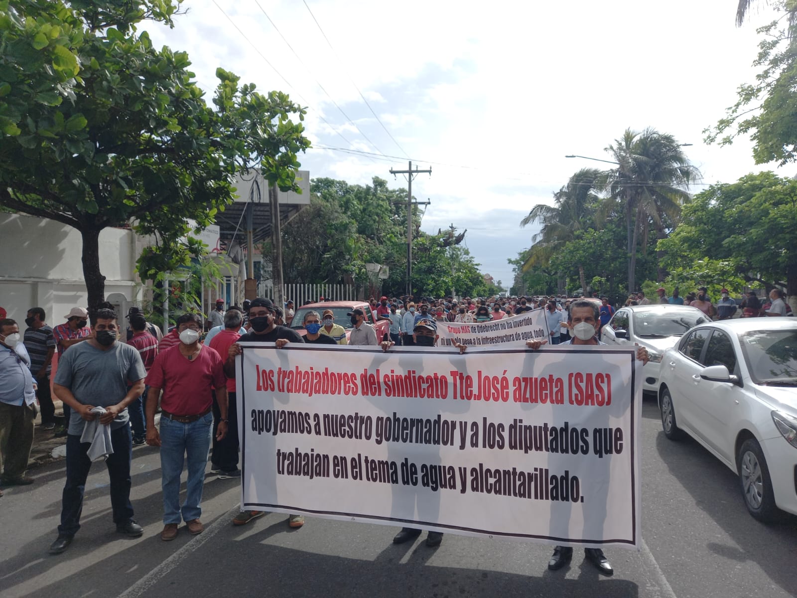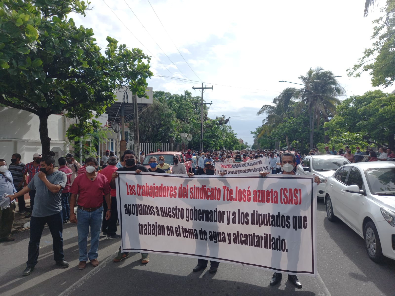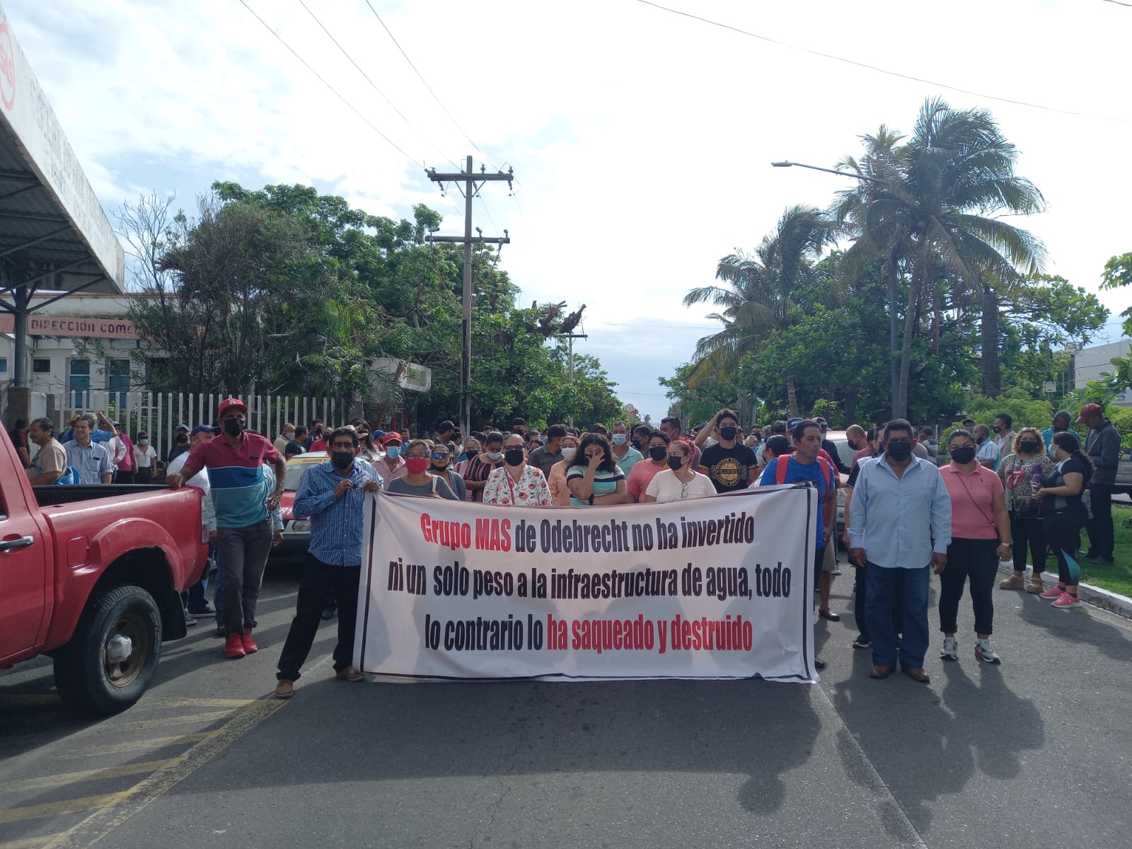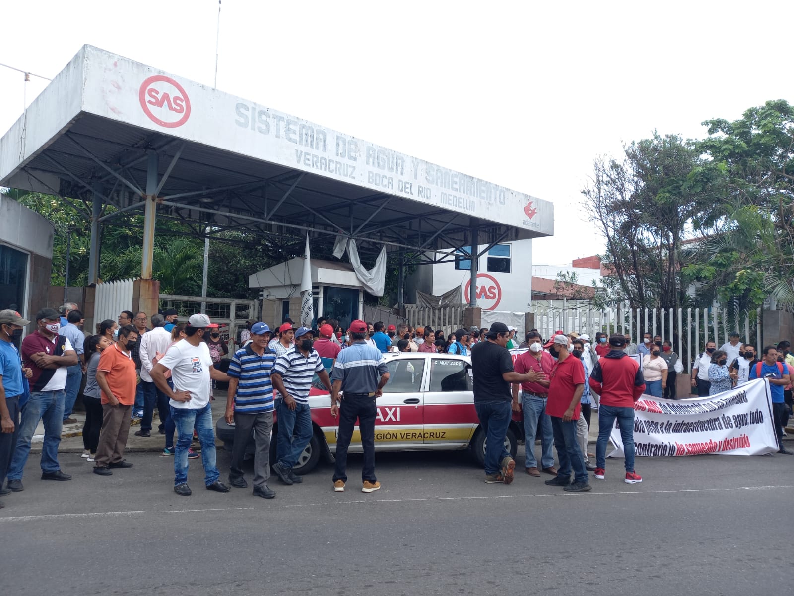 Veracruz, Ver.- Extrabajadores del extinto Sistema de Agua y Saneamiento (SAS) se manifestaron de nueva cuenta para externar su postura sobre Grupo MAS.