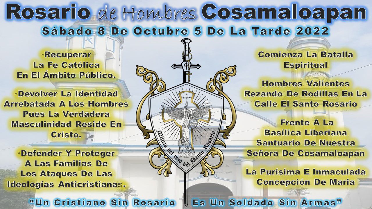Cosamaloapan, Ver.- Se está convocando a varones a rezar el rosario, hinchados frente al templo de San Martín de Tours con rango de Basílica Liberiana este ocho del presente a las 17:00 horas, tanto en Cosamaloapan como en otras partes del mundo.