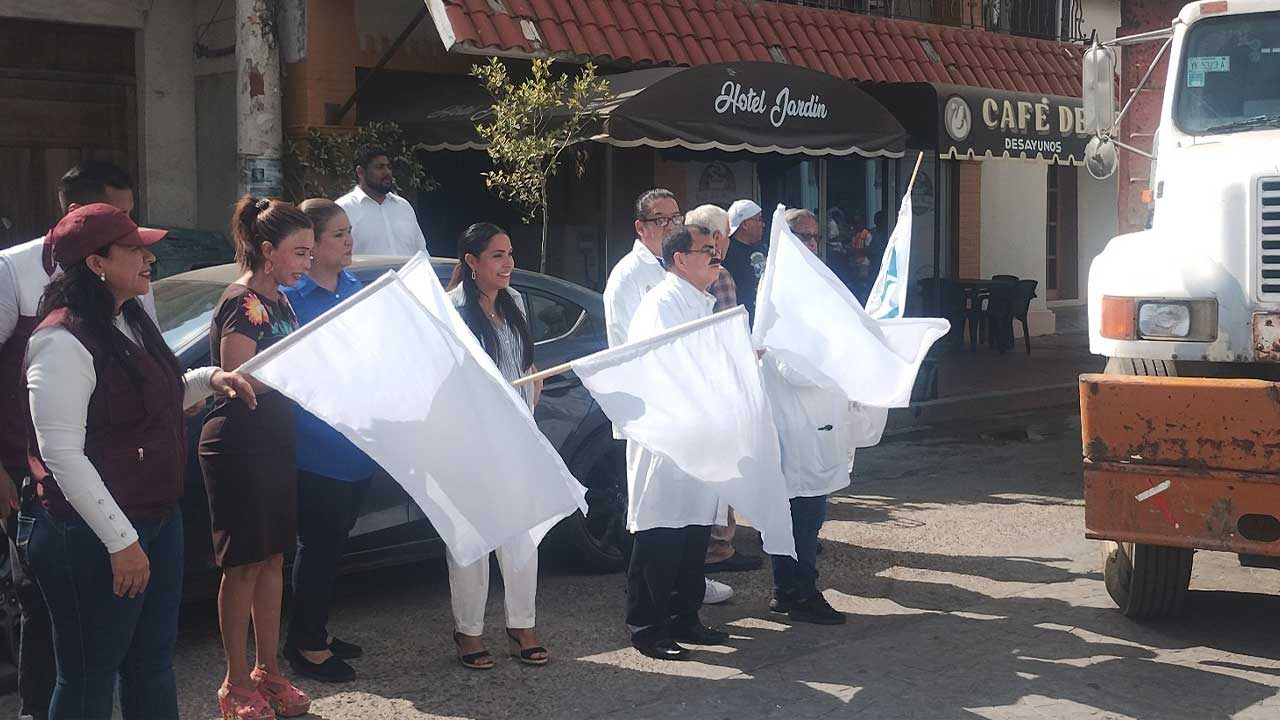 La síndica del Ayuntamiento, Linda Xóchitl Villegas Celis, encabezó igualmente el acto de banderazo a descacharrización, representando al presidente municipal, y acompañando a la regidora primera, Ericka Reinecke Reyes, a la titular del DIF, Mirelle Villegas Cruz, y a su directora, Amada Fabián Saviñón, agradeciendo el apoyo municipal la coordinadora médica de la Región 14 del programa IMSS Bienestar, Marina Griselda López Sánchez, como parte de la primera Jornada Nacional contra el Dengue y la Chikungunya.