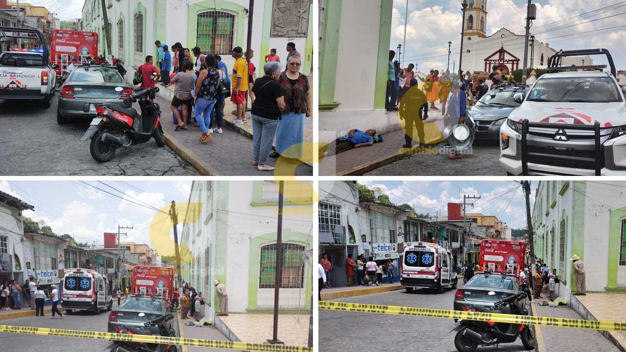 Papantla, Ver.- Una verdadera tragedia se suscitó en pleno centro de esta cabecera municipal de Papantla, cuando una persona que transitaba al filo de las 12:30 horas de este lunes perdió la vida frente a las instalaciones del mercado “Juarez”.