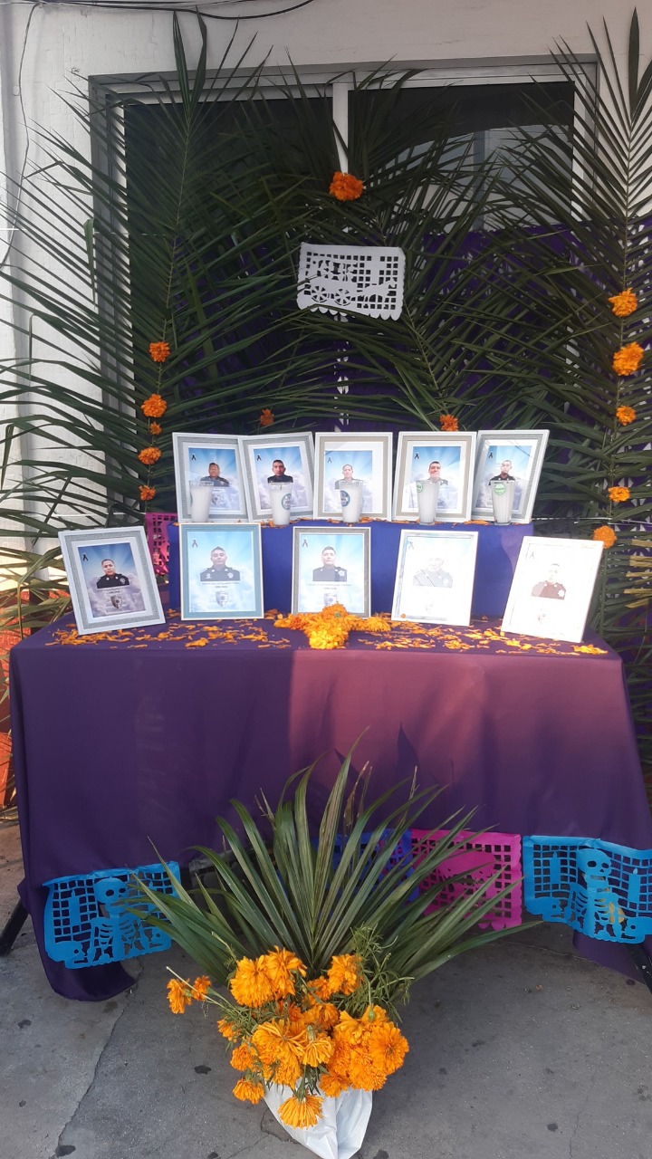 Las fotografías de una decena de policías fueron colocadas en el altar de los bajos del palacio municipal.
