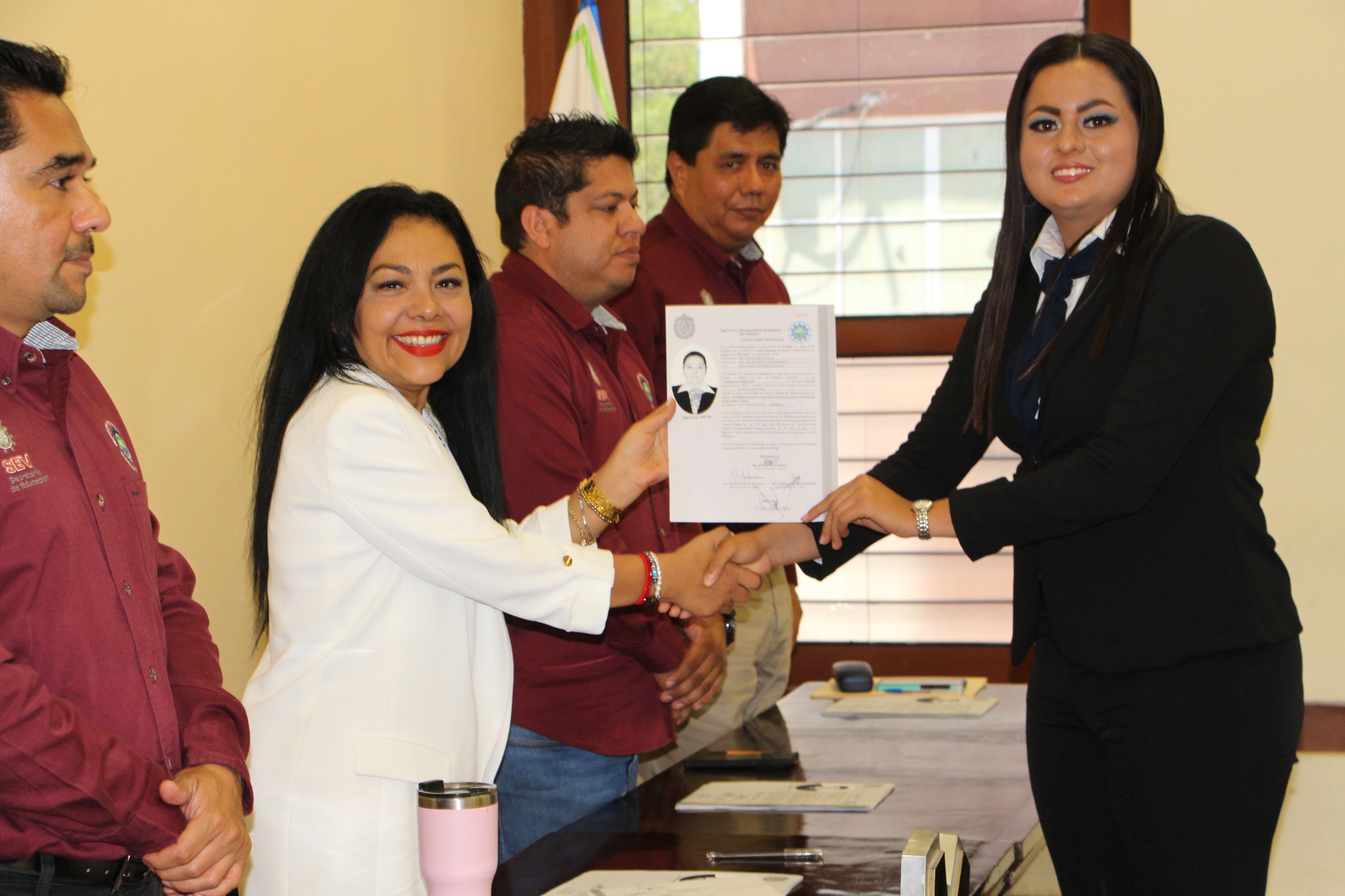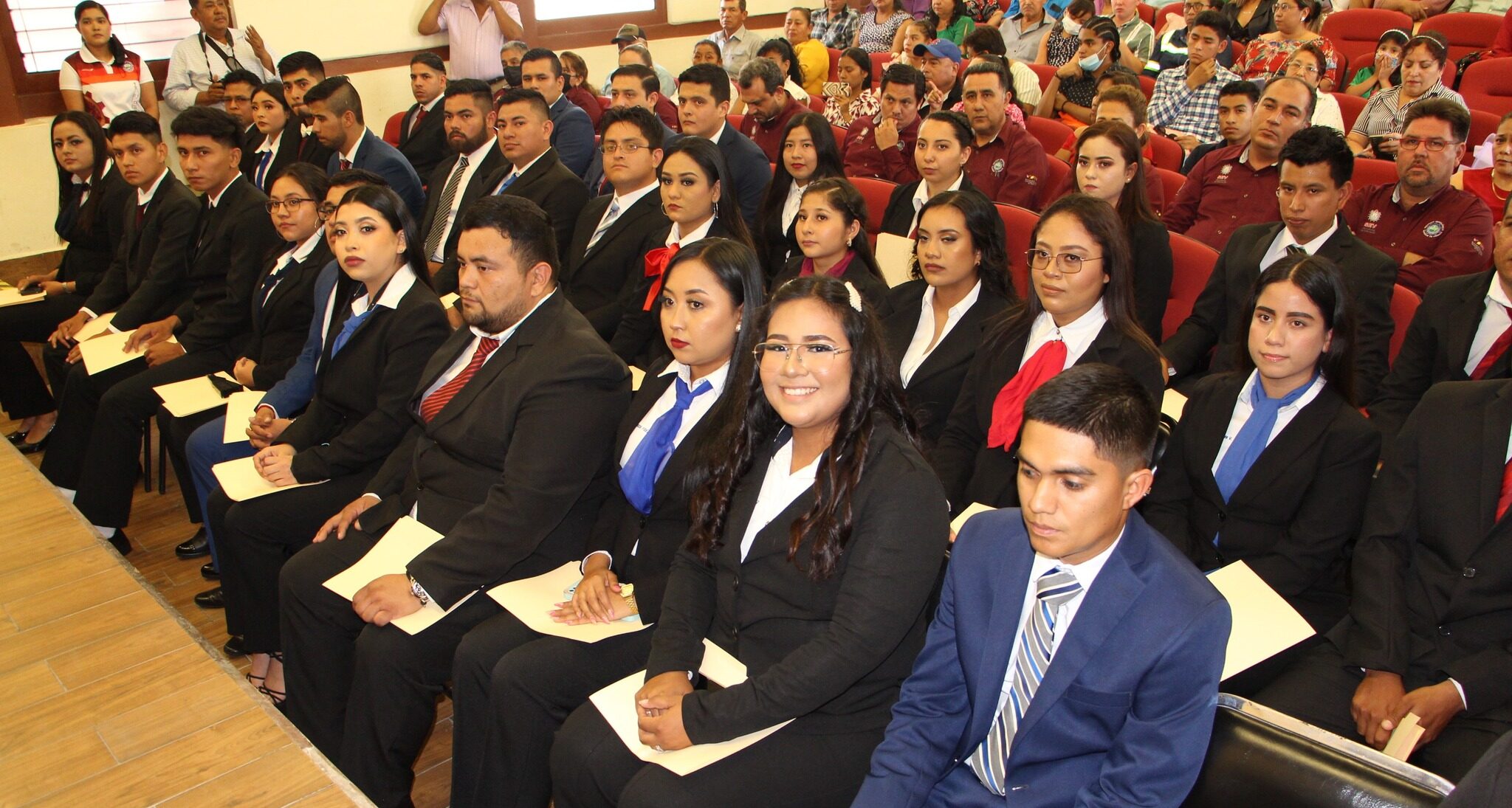 Recibiendo su acta de examen profesional: Esmeralda Ponce Maza, Cruz Manuel Ruiz Sarmiento, David Salvador Rocha Vargas, Diana Laura Reyna Ramírez, Guillermo Ernesto Saldaña Cruz, Sandra Lizeth Rodríguez Gómez, Aldo Alexis Vázquez Juárez, Rosa Isela García Fernández, Reina Isabel Méndez Fernández, Jesús Alfredo Jiménez Trejo, Braulio Castro Valdez, José Luis García Feria, Miguel Alejandro Guerrero Rodríguez, Mitzy Paola Orta Cervantes, Jesús Adrián Del Ángel Hernández, Carlos Antonio Toledo Navarrete, Juan Pablo Arteaga Calzada, Edgar Isaid Salazar Garza, Mario Hernández Hernández, Eduardo Calleja Hernández, Alhondra Ruiz Delgado, Gerardo de Jesús Martínez Ramírez, Rosa Isela Galindo Pecina, Ana Laura Morales Antonio, Giovanna Gutiérrez Rivas, Betzy Enid Bautista Valdez, Adolfo Ángel Pérez Torres, Israel Hernández Chávez, Carlos Edmundo Hernández Pascual, Gerardo Marroquín Díaz, Nazario Hernández Aguilar, Jairo Álvarez Chargoy, Félix Abraham Cedillo Díaz, Salvador Tovar Navarro, Alejandra Hernández García, Lidia Mariel Velázquez González, Alondra Sosa Olguín, Jorge Arturo Guerrero Juárez y Erick Daniel Rodríguez Sandoval.