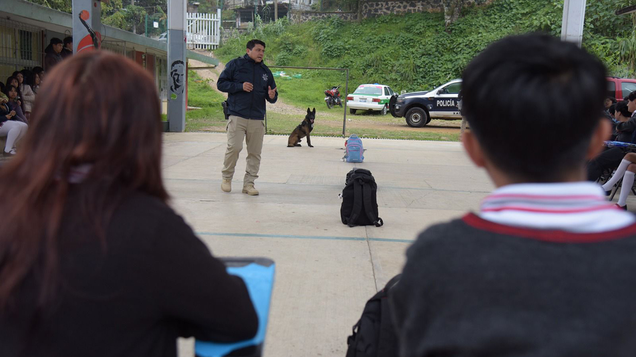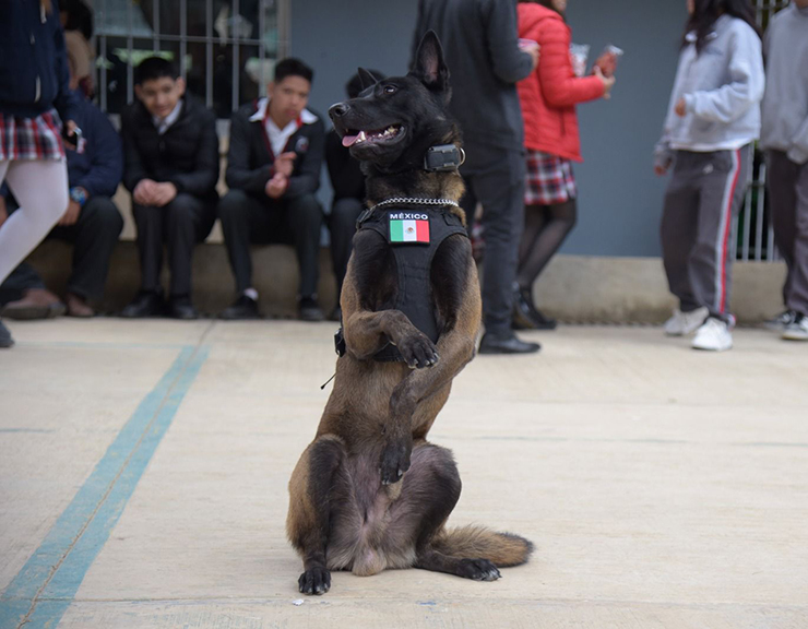 Además, se contó con la colaboración de un elemento canino y un oficial adscrito a la Brigada Animal de la Policía, quien expuso el manejo, control básico y avanzado del binomio, así como las habilidades de obediencia, socialización y trabajo en entornos escolares.